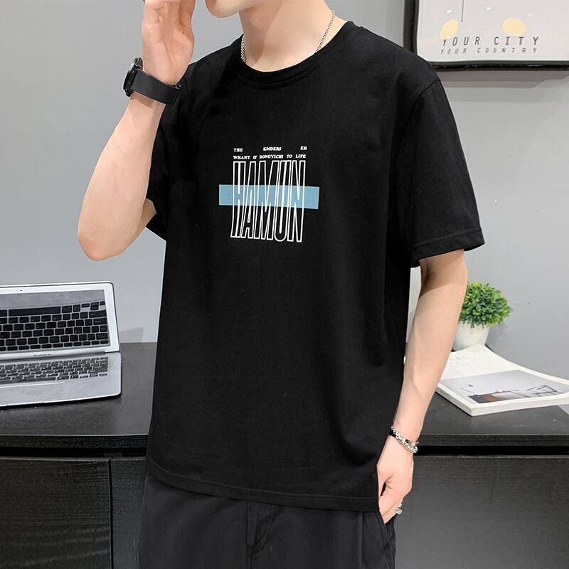 T-shirt men's 2022 spring and summer new round neck loose t-shirt trend all-match cotton bottoming shirt short-sleeved top コットン スプリング 春物 サマー 夏物 Oネック Tシャツ doushi10381714705