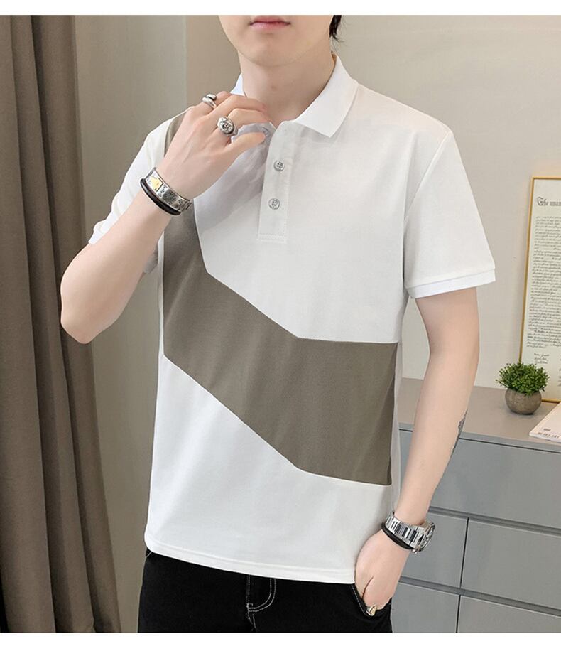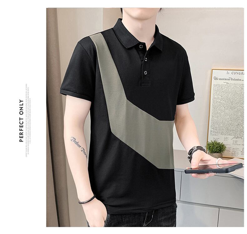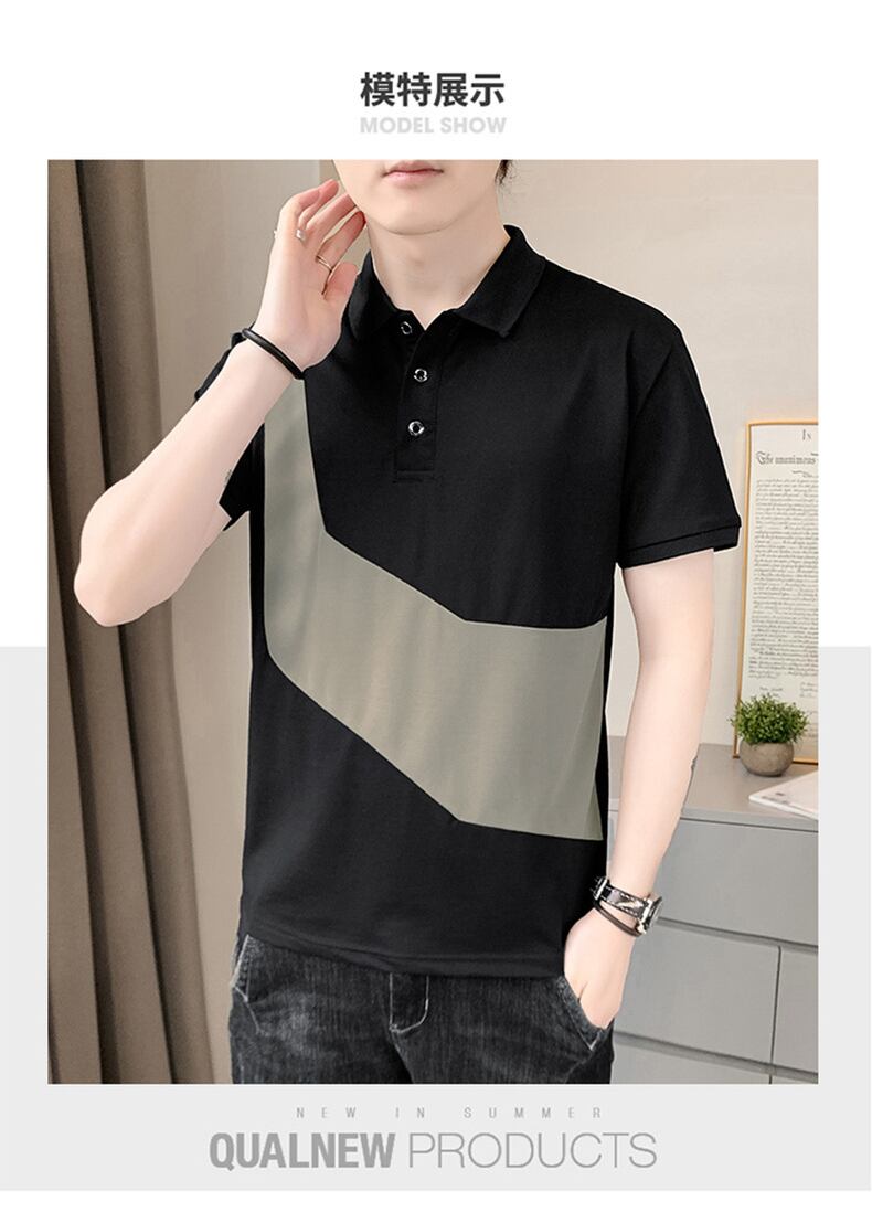 POLO shirt short-sleeved men's summer contrast color collared men's T-shirt version trend casual lapel shirt top clothes t レッド カジュアル サマー 夏物 Tシャツ doushi99962222530