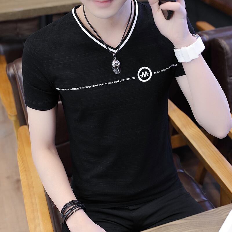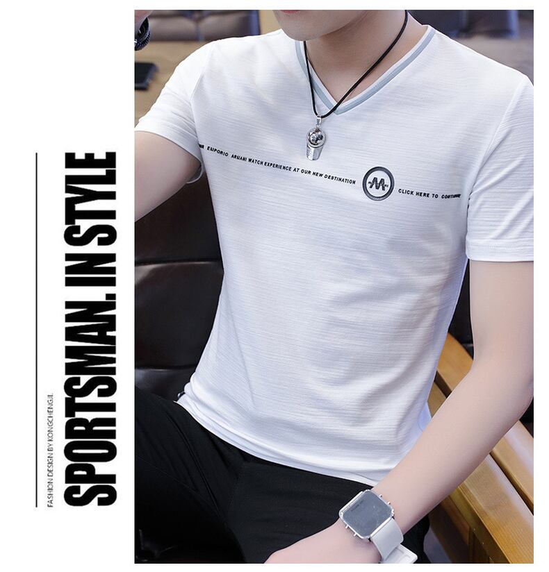 2022 summer new ice silk V-neck men's top clothes tide brand ice-sensing t-shirt cotton fashion men's short-sleeved t-shirt コットン サマー 夏物 Vネック シルク Tシャツ doushi76773951333