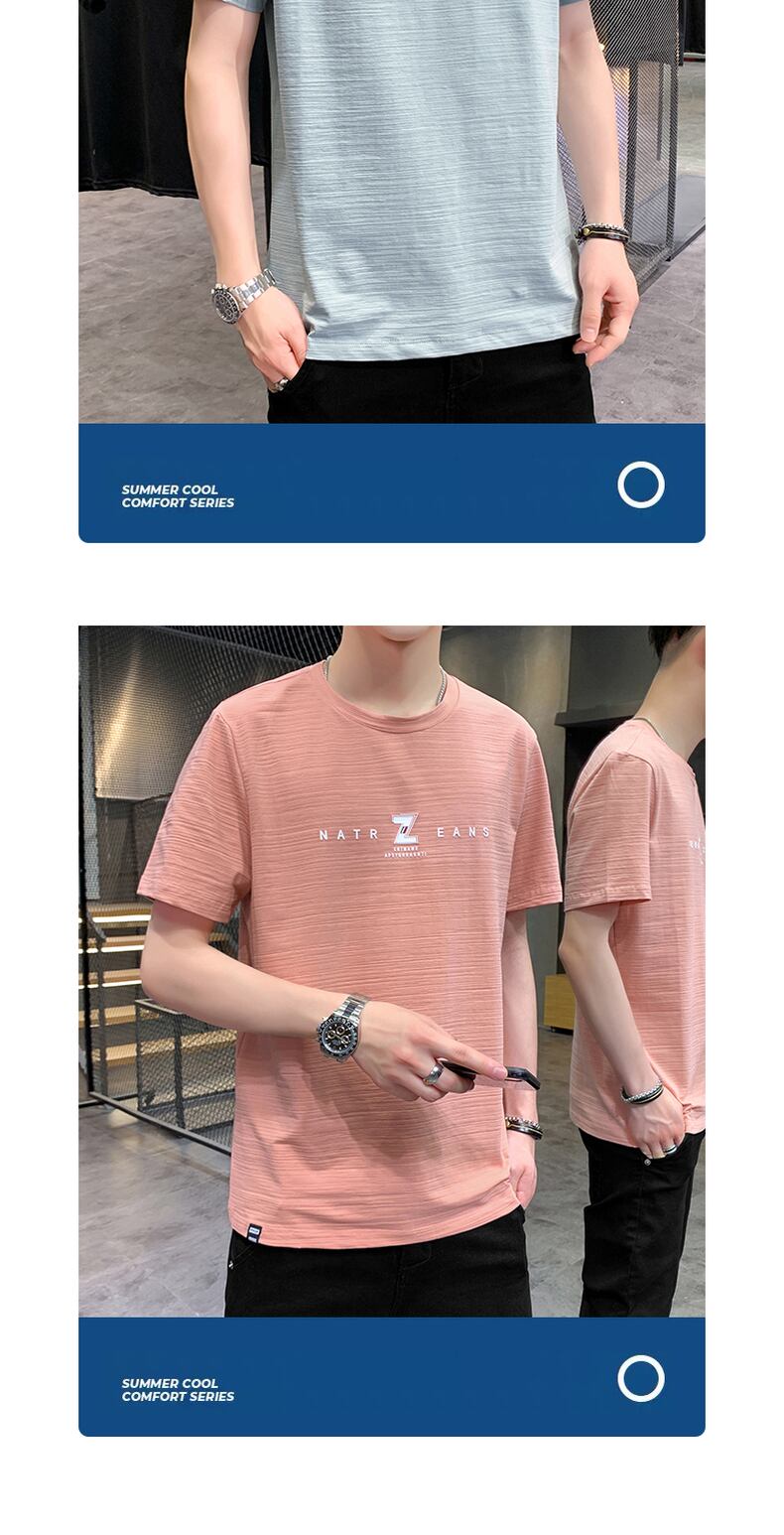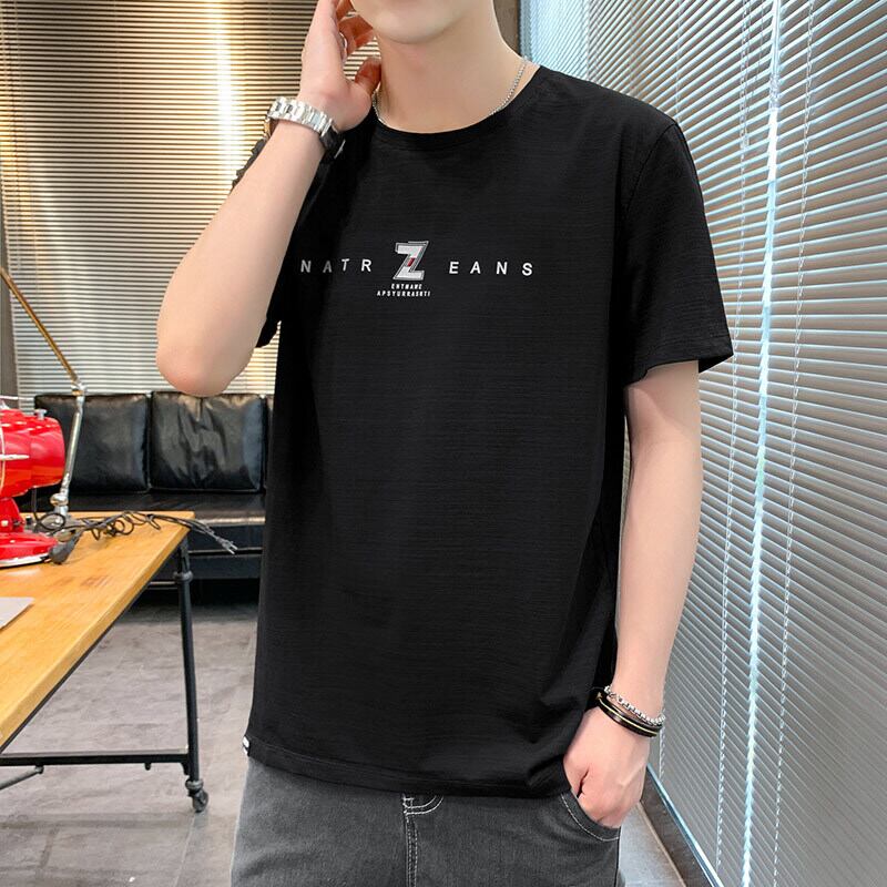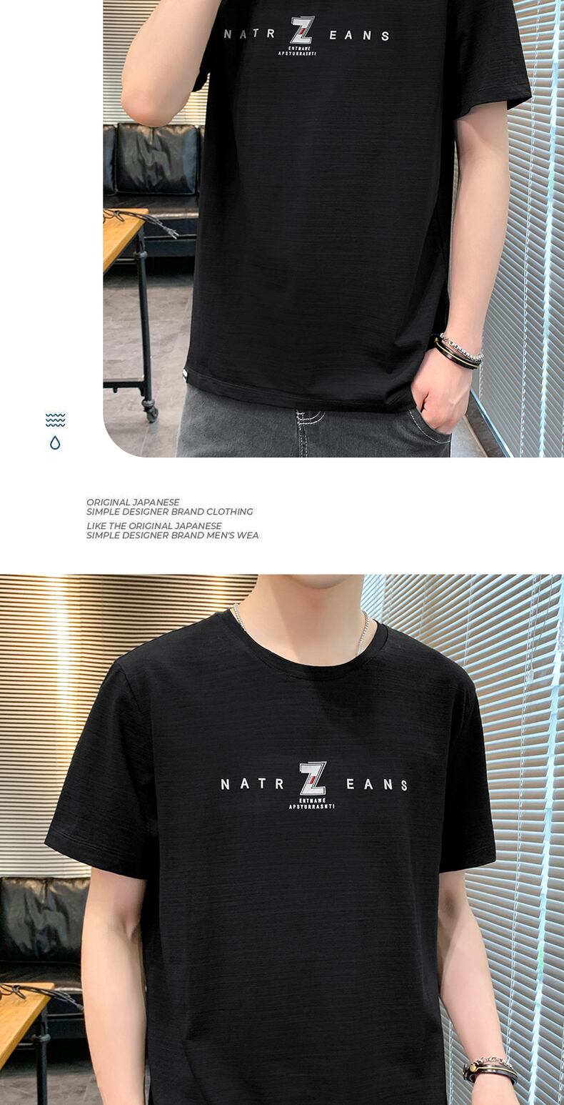 Men's ice silk short-sleeved summer 2022 new trendy brand ins cotton and linen quick-drying t-shirt version trend half-sleeve t-shirt コットン サマー 夏物 シルク Tシャツ doushi2845260915