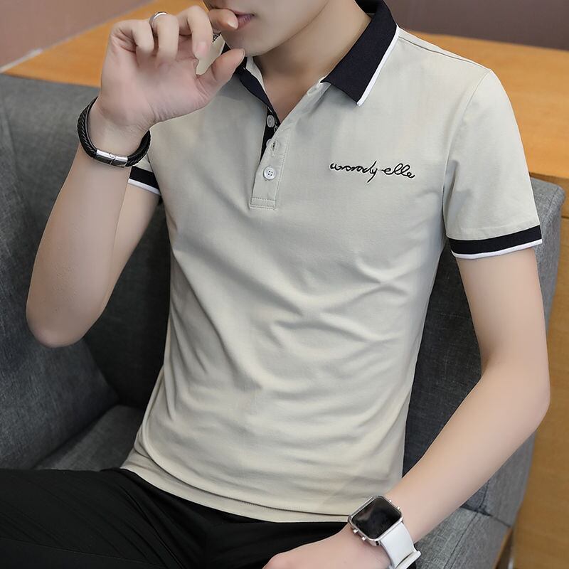 Men's short-sleeved t-shirt cotton version body trimming shirt 2022 summer trend POLO shirt lapel solid color polo shirt コットン サマー 夏物 Tシャツ ソリッドカラー doushi38413857023