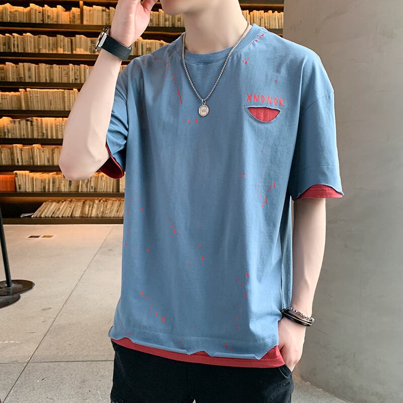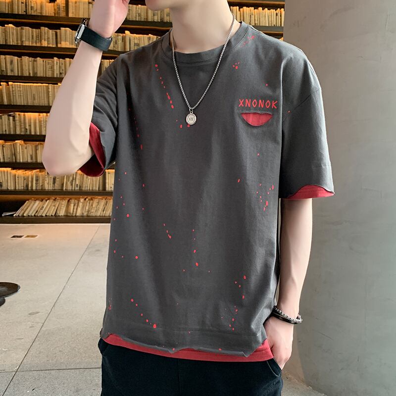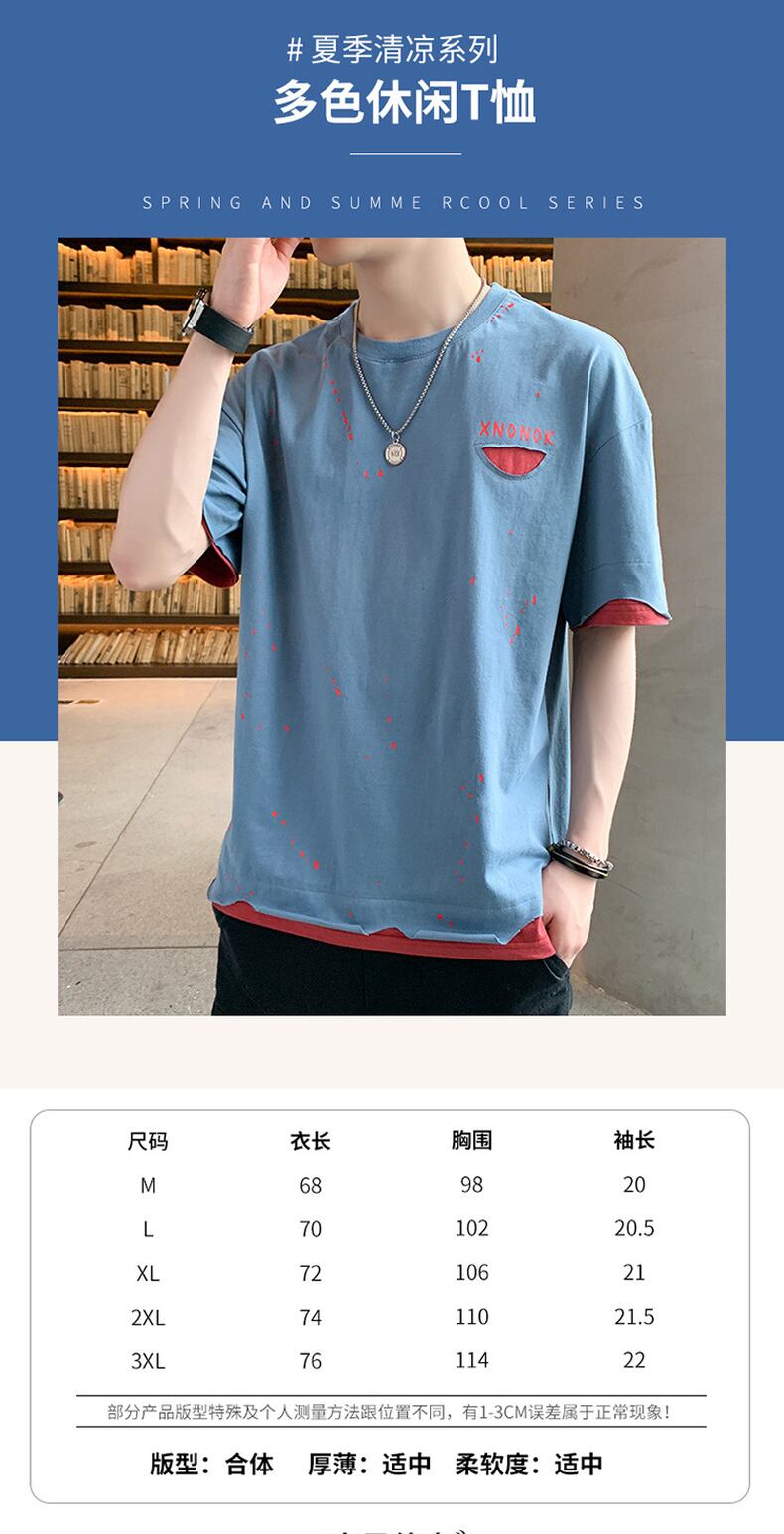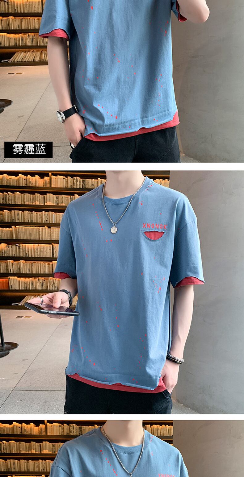 Graffiti men's cotton short-sleeved T-shirt summer ice clothes version of the trend loose fake two-piece half-sleeved T-shirt t コットン サマー 夏物 Tシャツ doushi88134420958