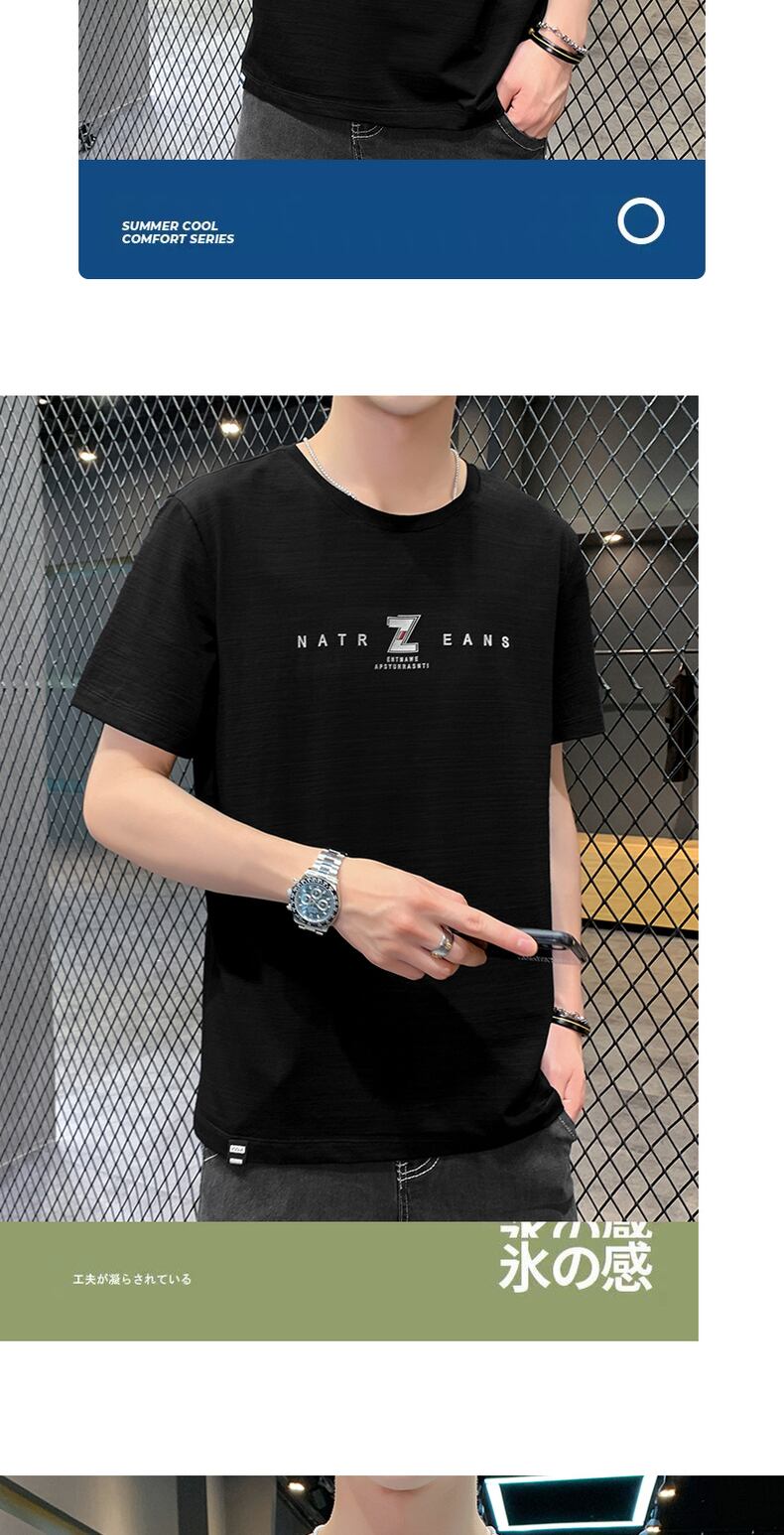 Ice silk short-sleeved t-shirt men's summer 2022 new trendy brand ins loose ice-sensing half-sleeved thin youth top clothes サマー 夏物 シルク Tシャツ doushi9722772062