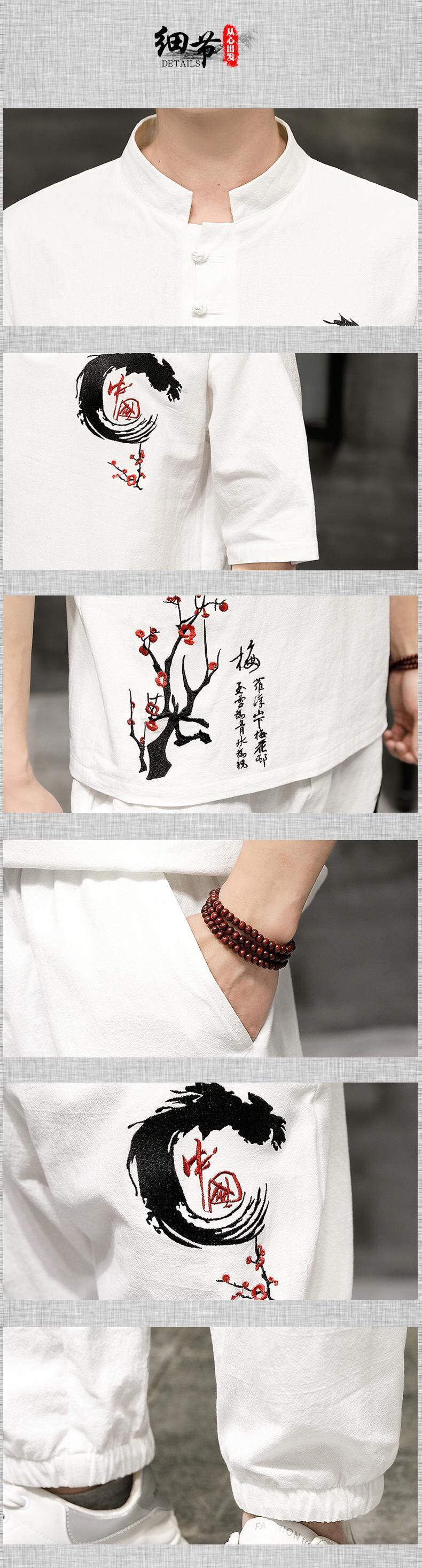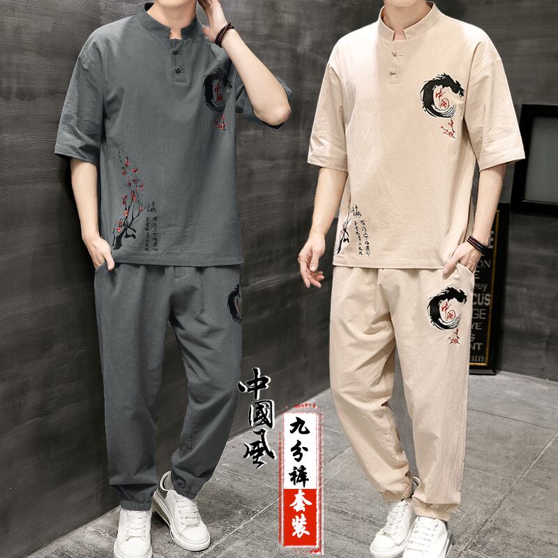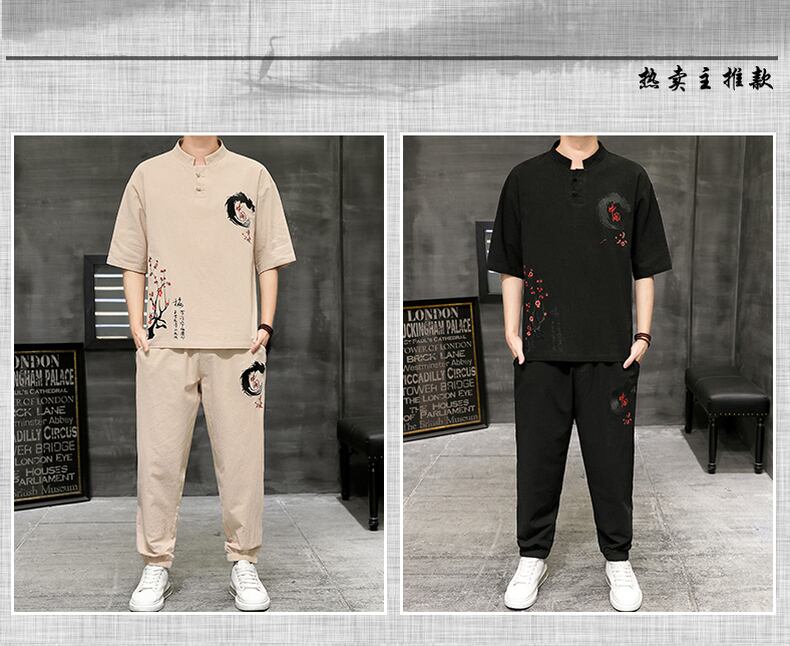 Chinese style men's summer short-sleeved men's suit loose cotton linen t-shirt Guochao linen summer embroidery casual コットン カジュアル 刺繍 サマー 夏物 Tシャツ doushi48705495772