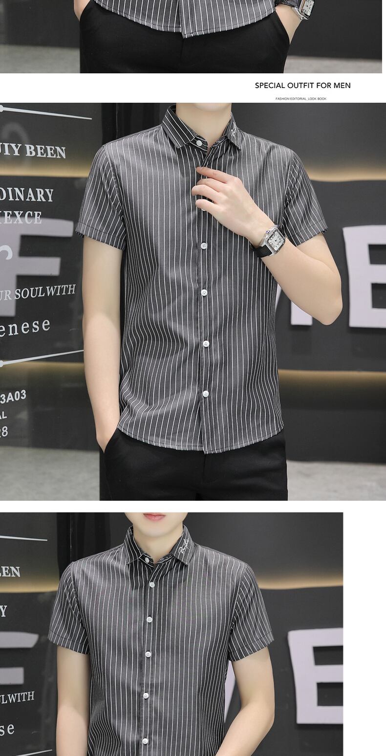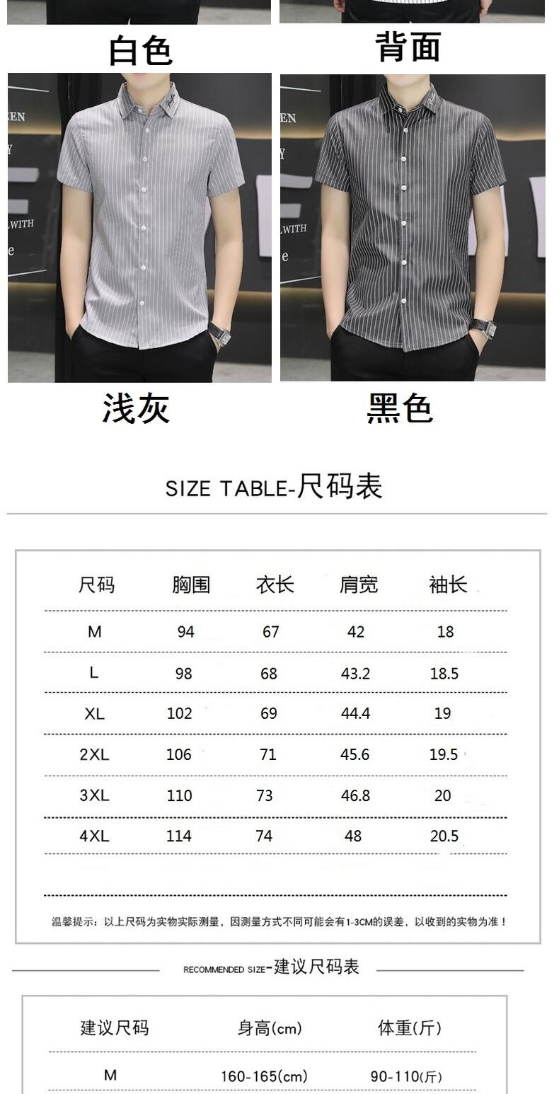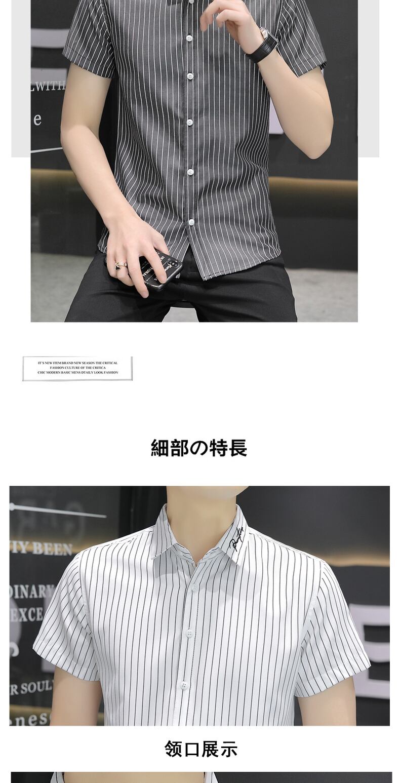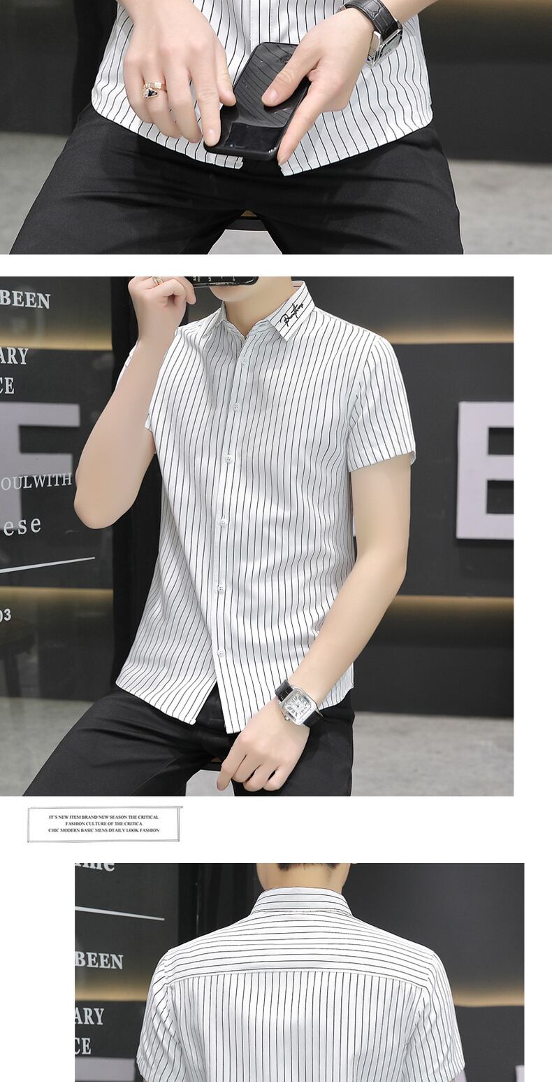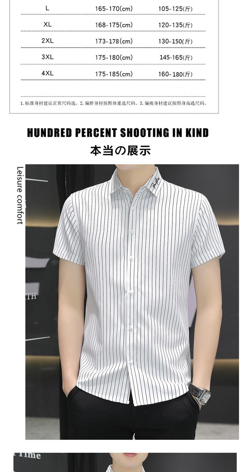 2022 new ice silk short-sleeved shirt men's summer thin version trend slim shirt wild striped top サマー 夏物 ストライプ スリム シルク doushi89686841603