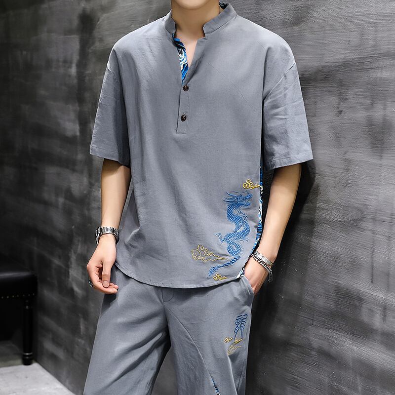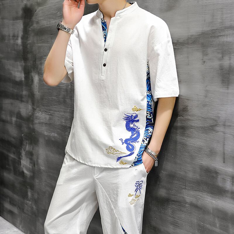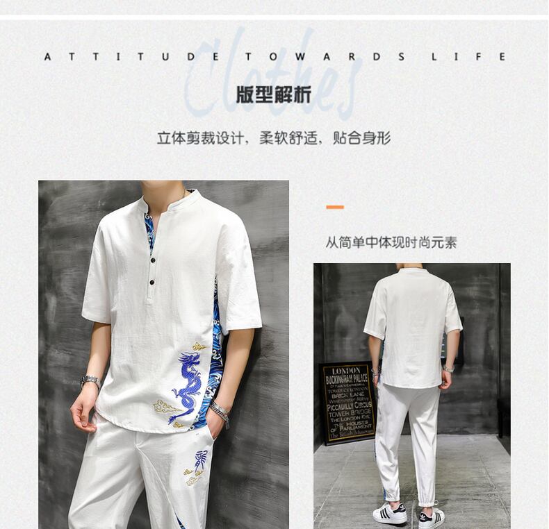 Summer men's short-sleeved t-shirt two-piece set Chinese style ice silk suit loose set with handsome men's Tang suit サマー 夏物 シルク Tシャツ doushi63113084736