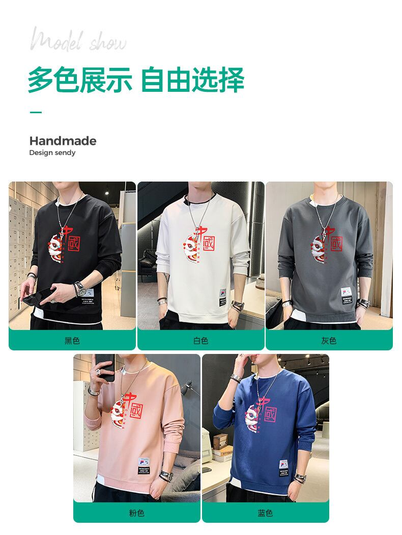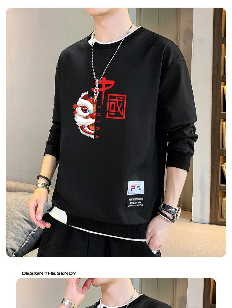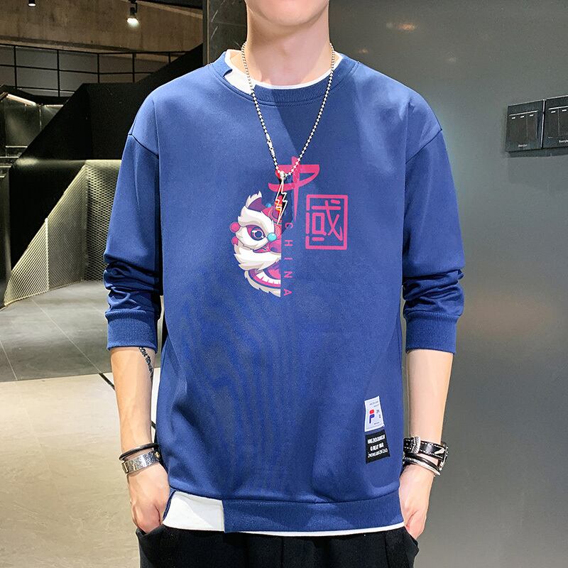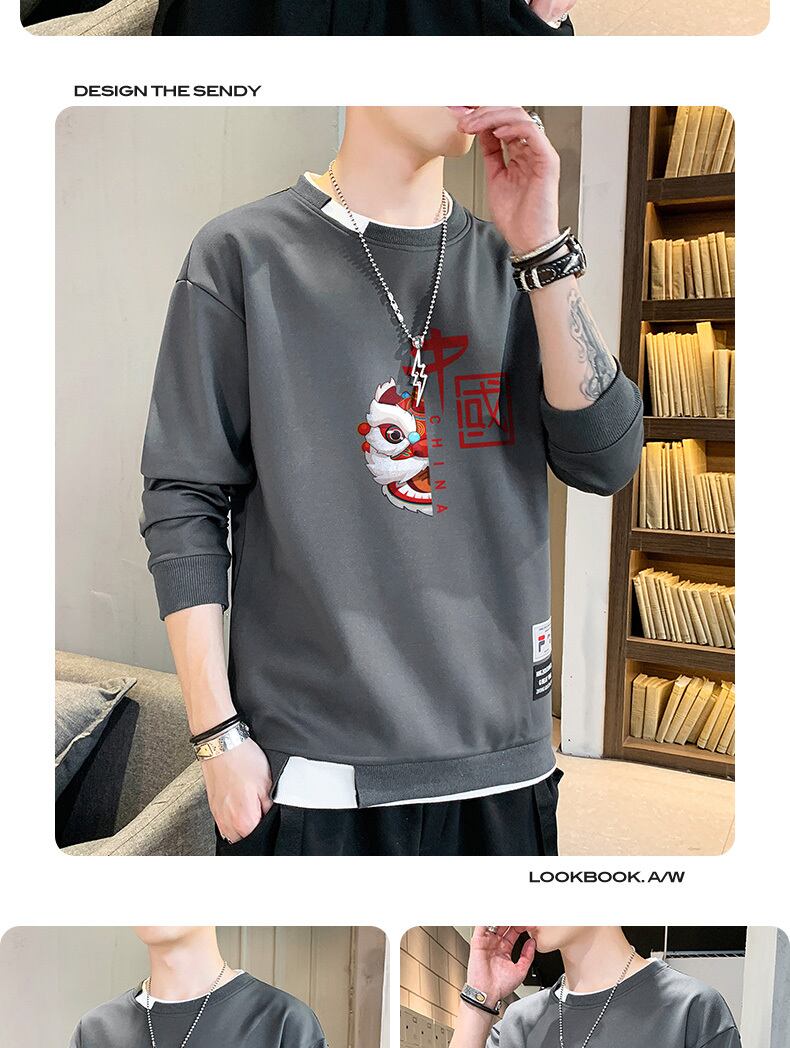 Spring round neck sweater men's national trend thin long-sleeved T-shirt youth trend ins fake two spring and autumn clothes ロング スプリング 春物 オータム 秋物 Oネック Tシャツ doushi99645117030
