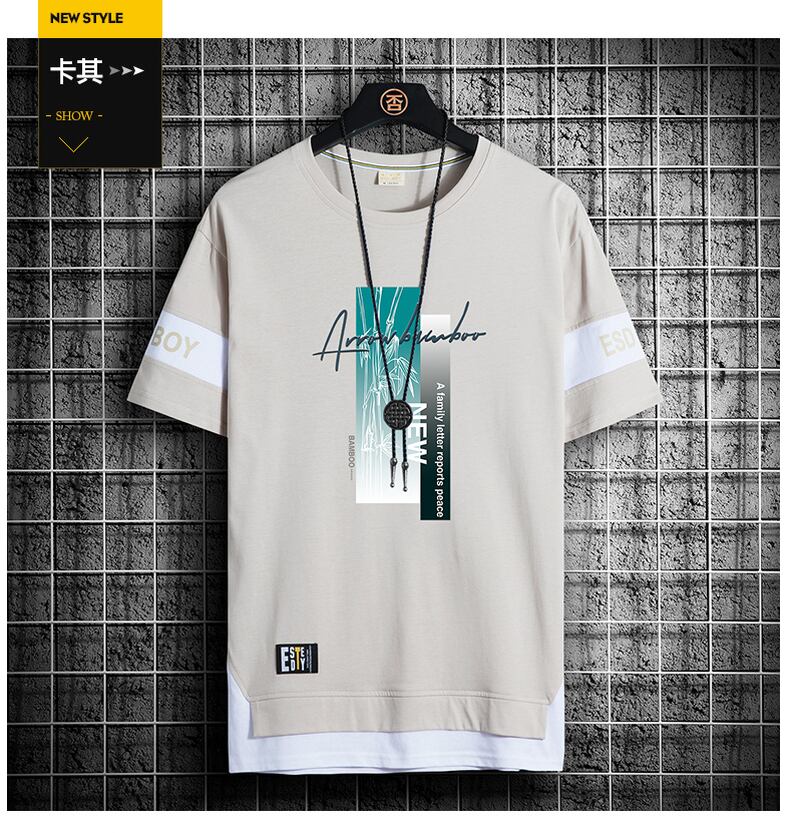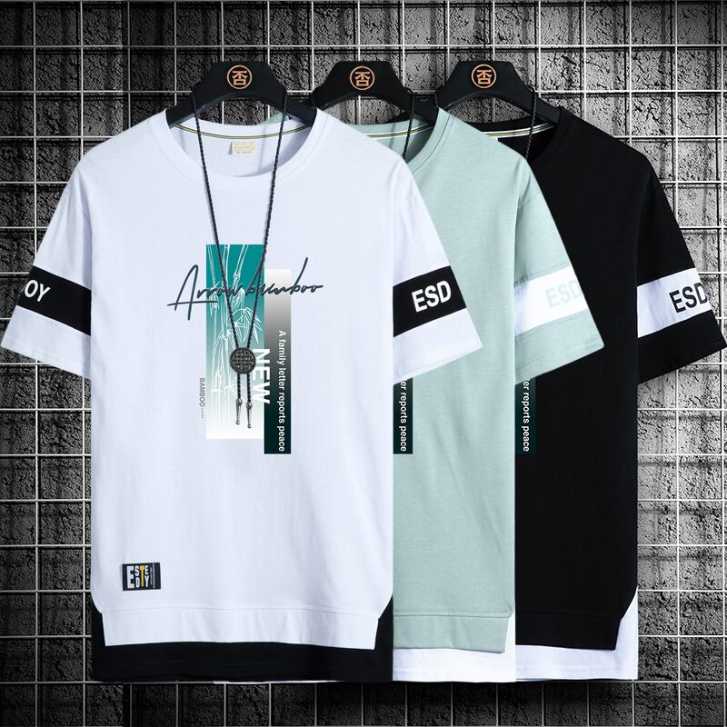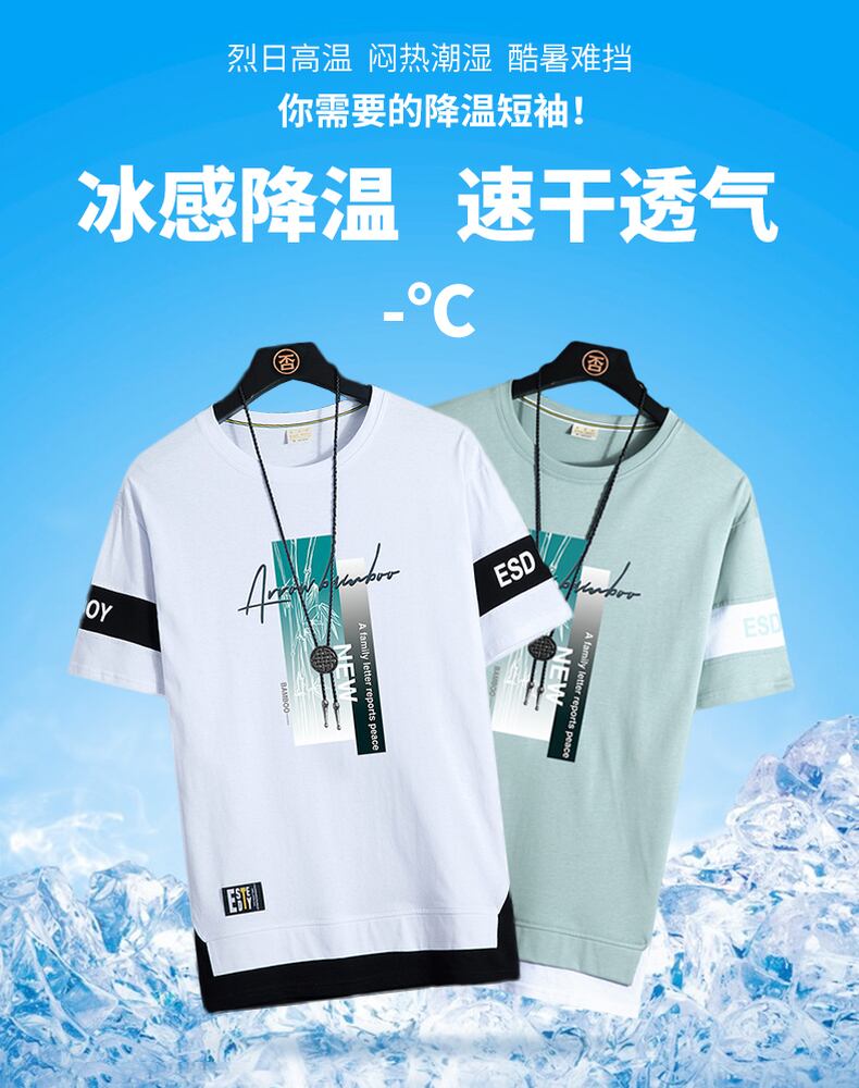 Ice silk short-sleeved t-shirt men's tide brand 2022 new cotton half-sleeved t-shirt handsome casual youth clothes T コットン カジュアル シルク Tシャツ doushi24761024941