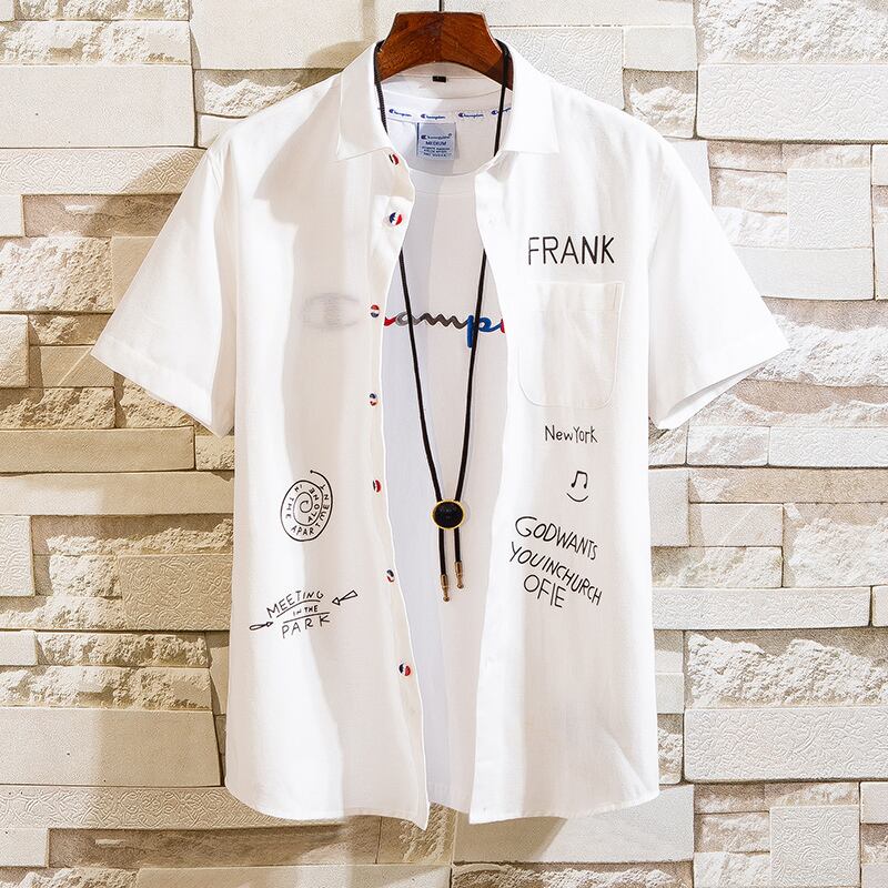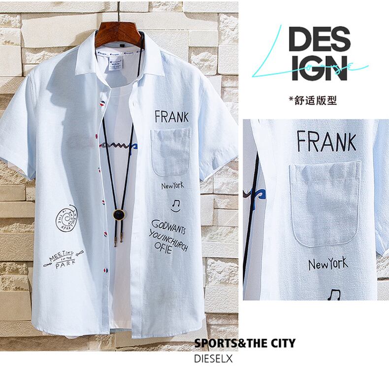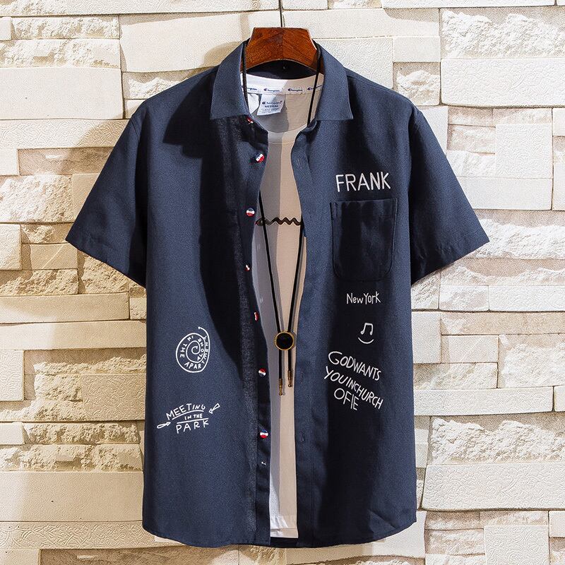 Short-sleeved shirt men's slim trend summer version 2022 new summer clothes iron-free five-point sleeve shirt inch shirt middle sleeve サマー 夏物 スリム doushi11832627353