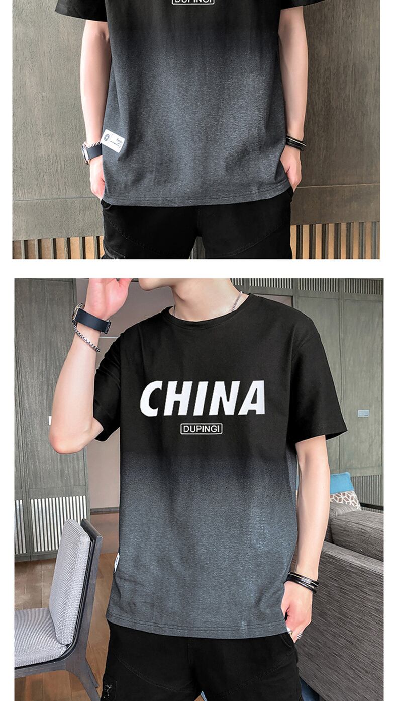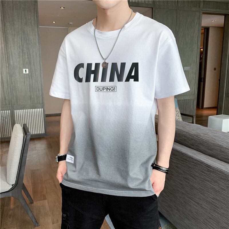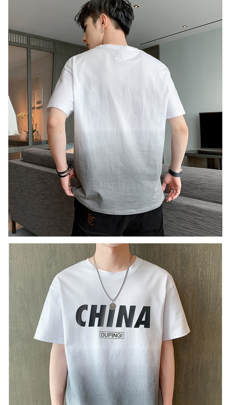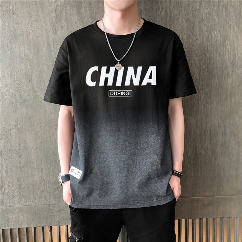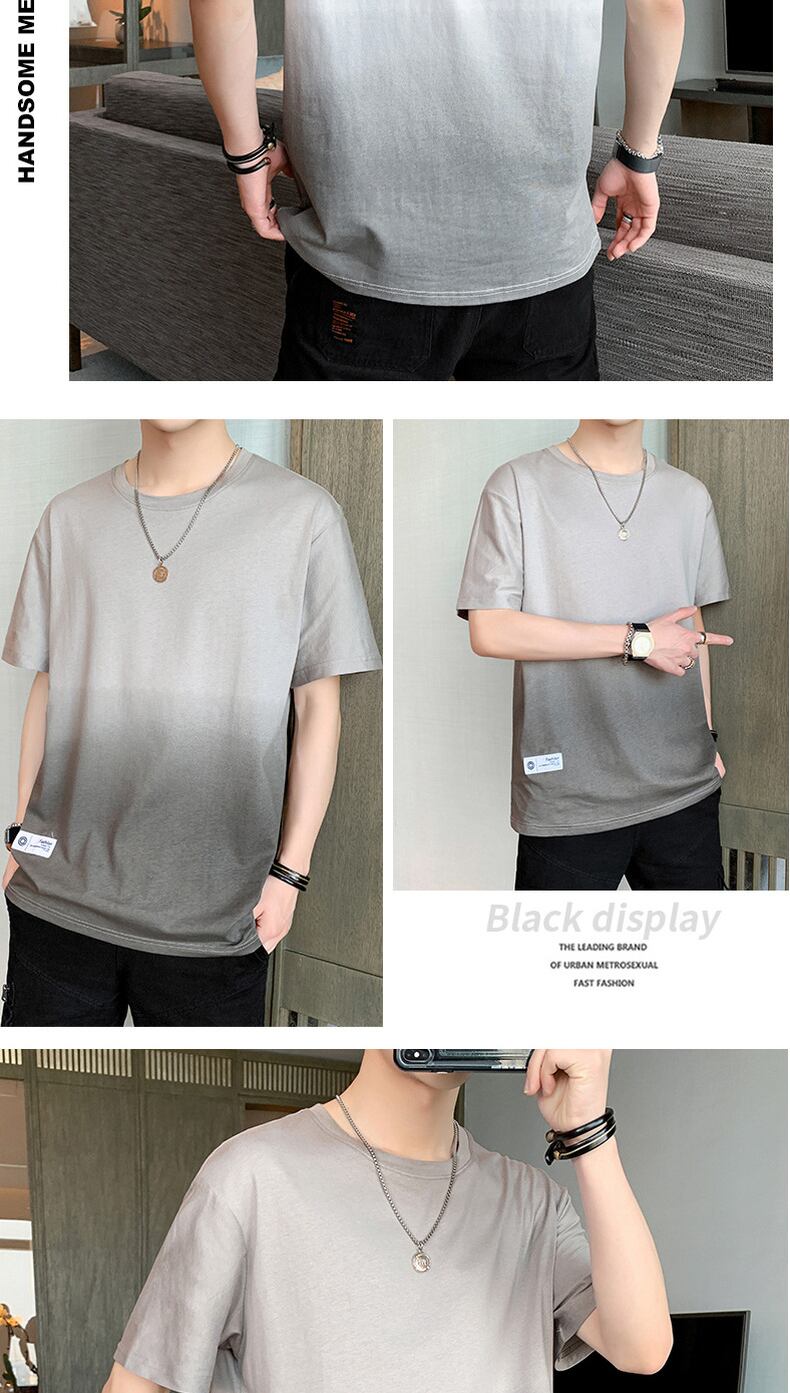 Ice silk cotton short-sleeved T-shirt men's summer thin gradient half-sleeved student tide brand trend loose ice clothes コットン サマー 夏物 シルク Tシャツ doushi4445625840