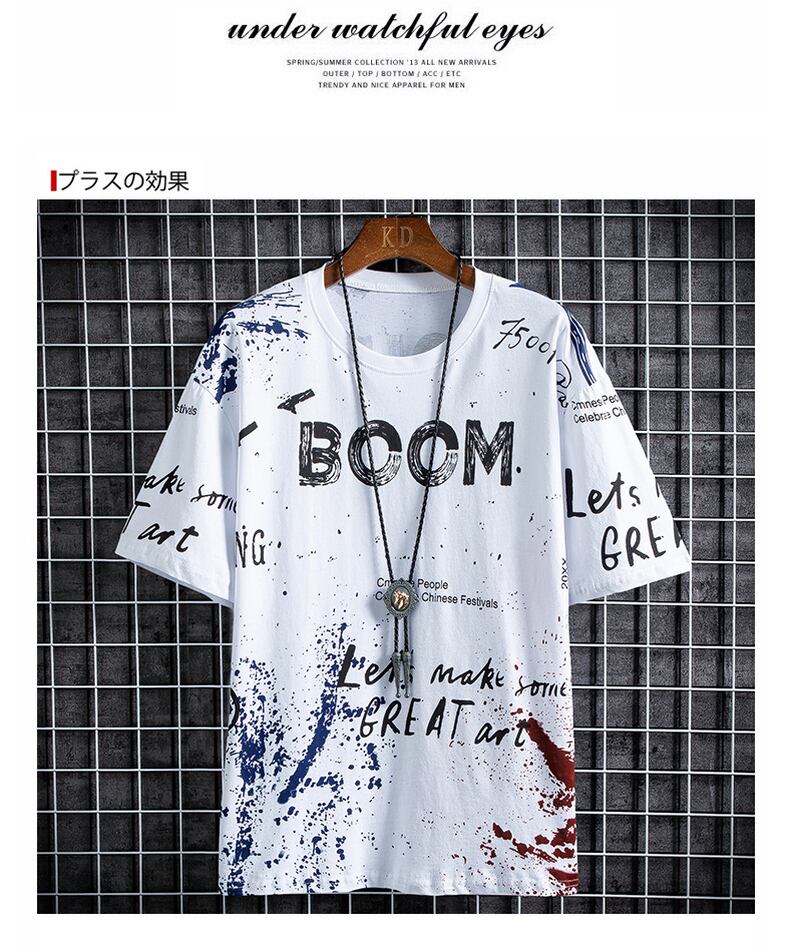 2022 new men's short-sleeved t-shirt tide brand half-sleeved body 桖 version trend summer men's cotton top clothes コットン サマー 夏物 Tシャツ doushi29604873030