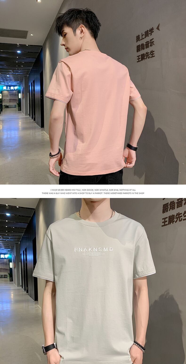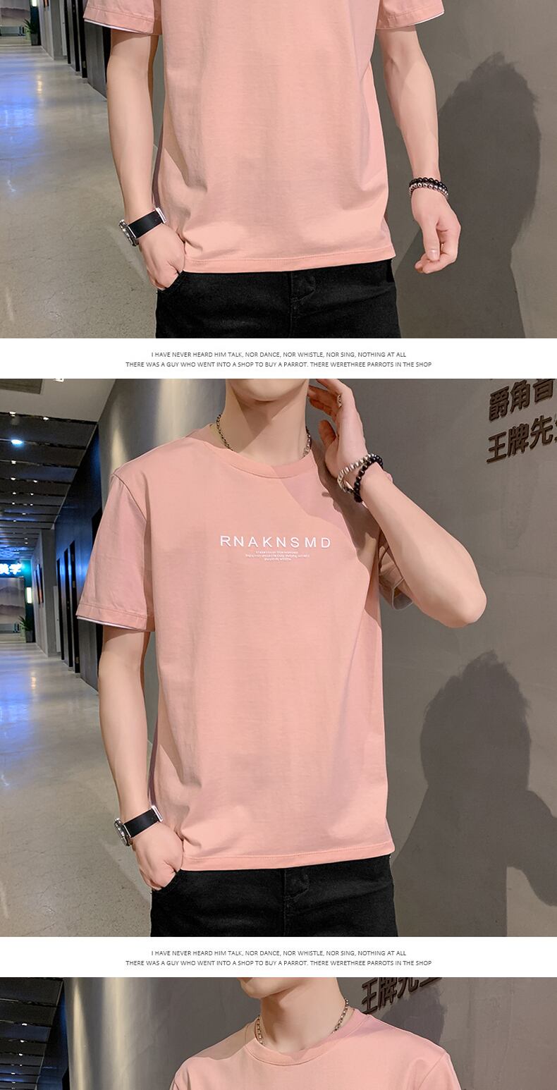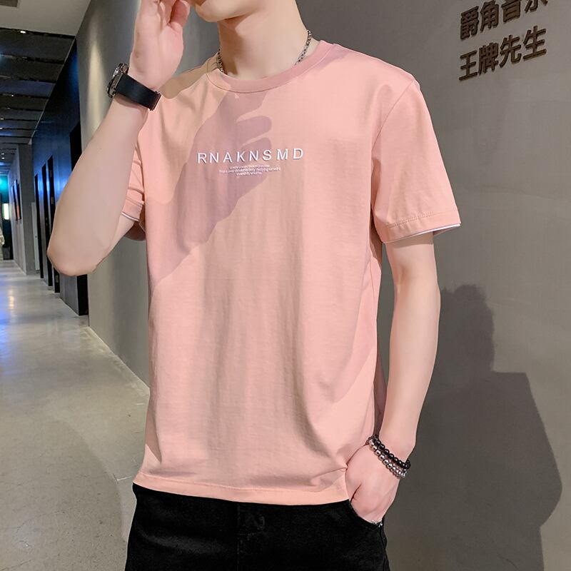 Short-sleeved t-shirt men's 2022 new summer trend loose ice silk pink half-sleeved all-match ice-sensing t-shirt thin ピンク サマー 夏物 シルク Tシャツ doushi96853311982