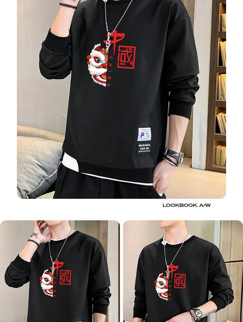 Fake two-piece sweater men's spring and autumn round neck national tide print bottoming shirt thin trend spring men's long-sleeved T-shirt ロング スプリング 春物 オータム 秋物 Oネック Tシャツ doushi65019337981