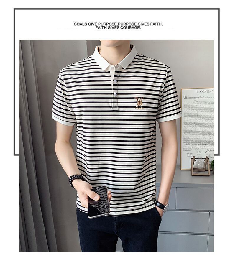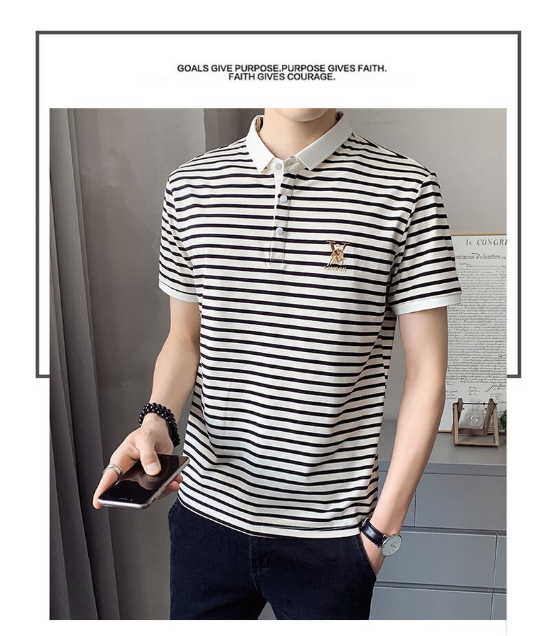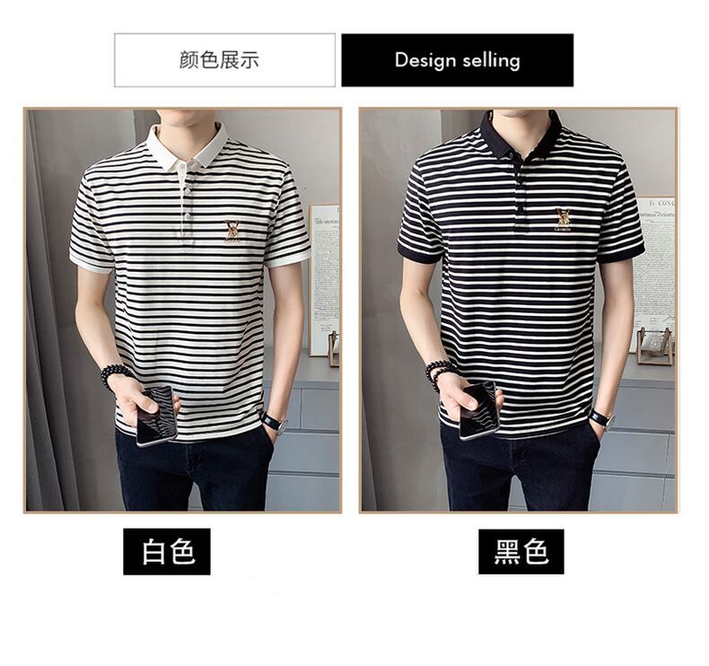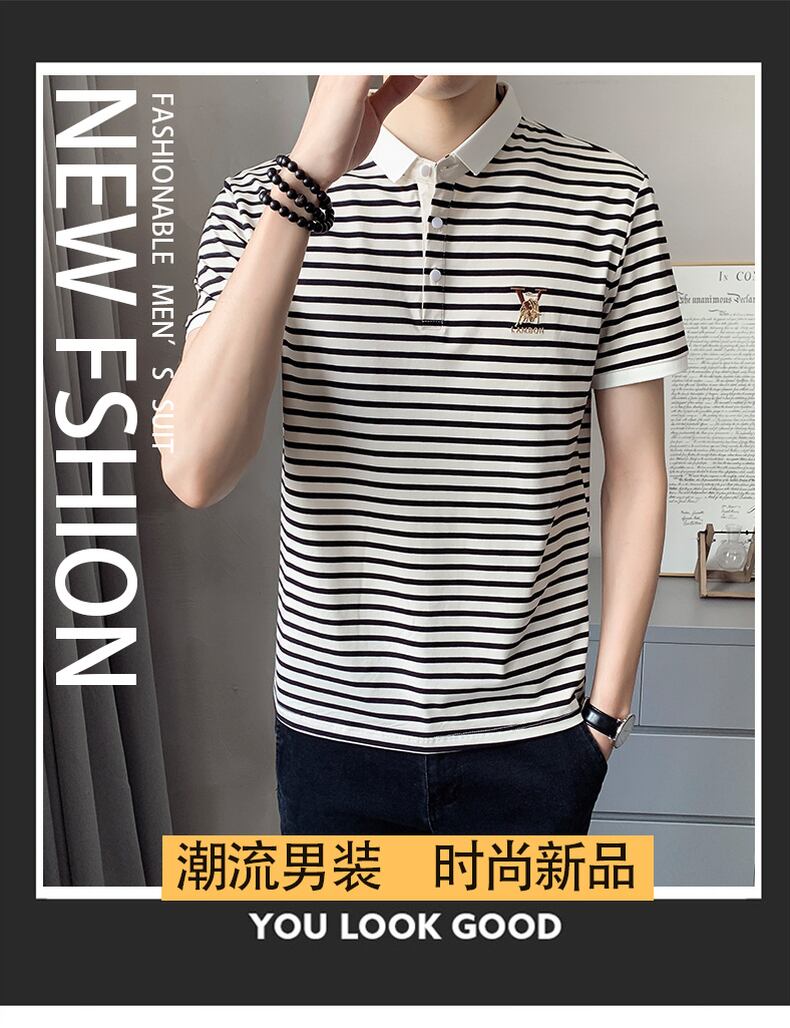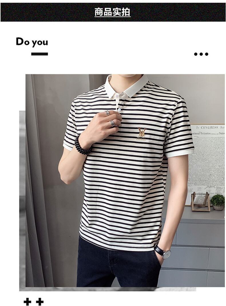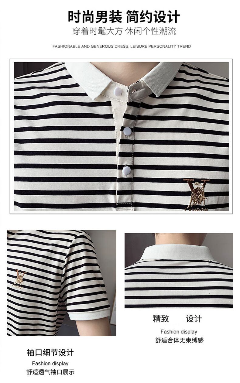 Short-sleeved t-shirt men's 2022 summer new lapel POLO shirt fashion trendy brand version of the ice sense casual striped half-sleeve カジュアル サマー 夏物 ストライプ Tシャツ doushi88661392461