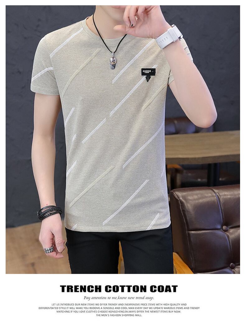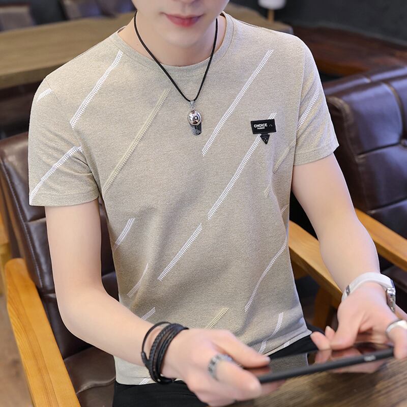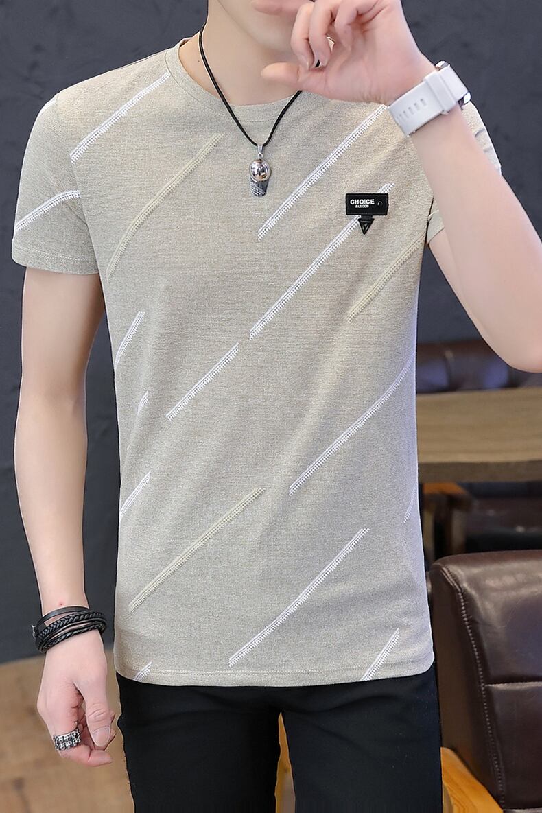 Summer ice silk short-sleeved t-shirt men's tide brand trend 2022 new version of the slim half-sleeved T-shirt round neck top clothes サマー 夏物 Oネック スリム シルク Tシャツ doushi89570799003