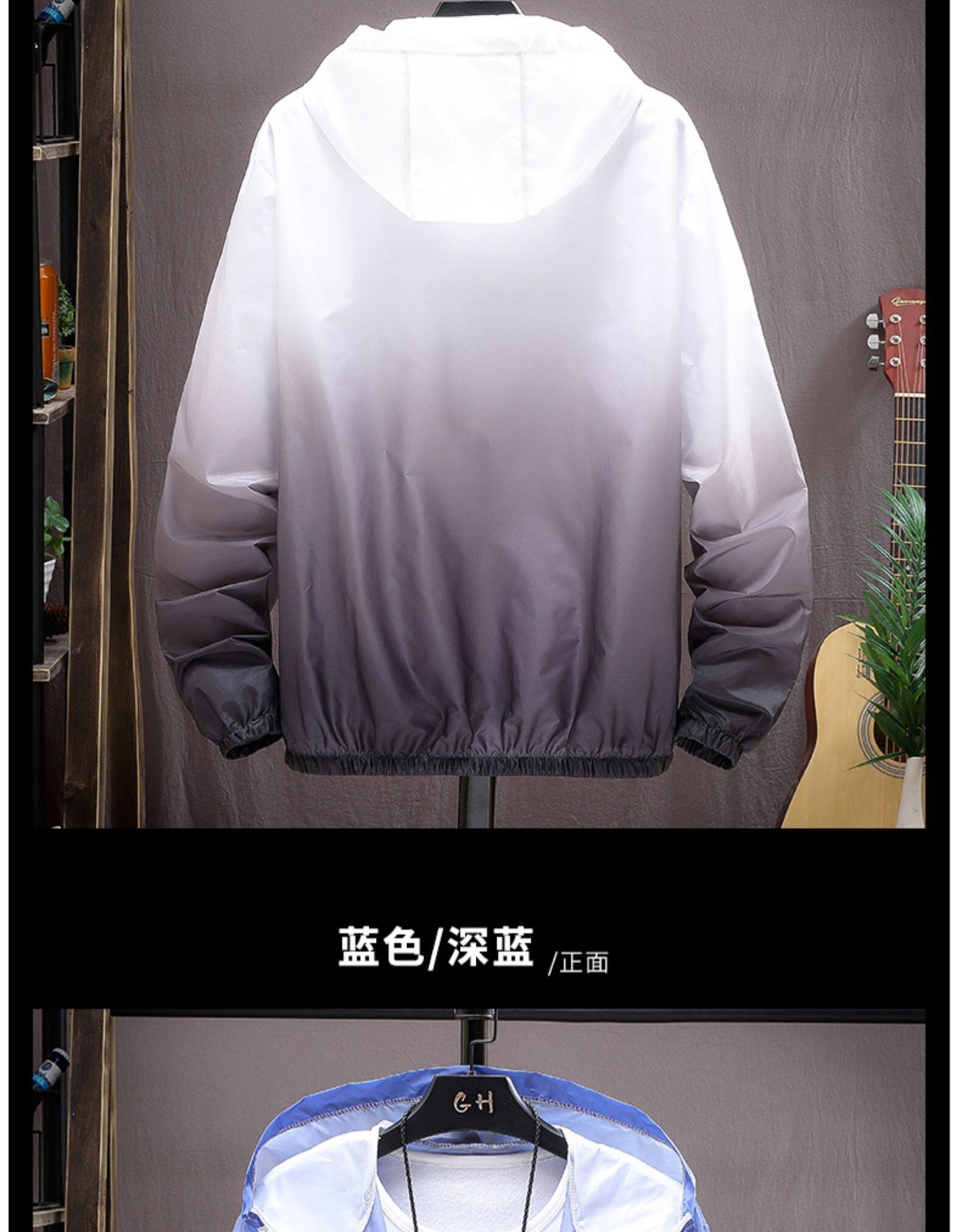 Gradient summer thin men's hooded jacket version of the trend personality sunscreen clothing outdoor skin clothing sunscreen clothing サマー 夏物 doushi46486020405