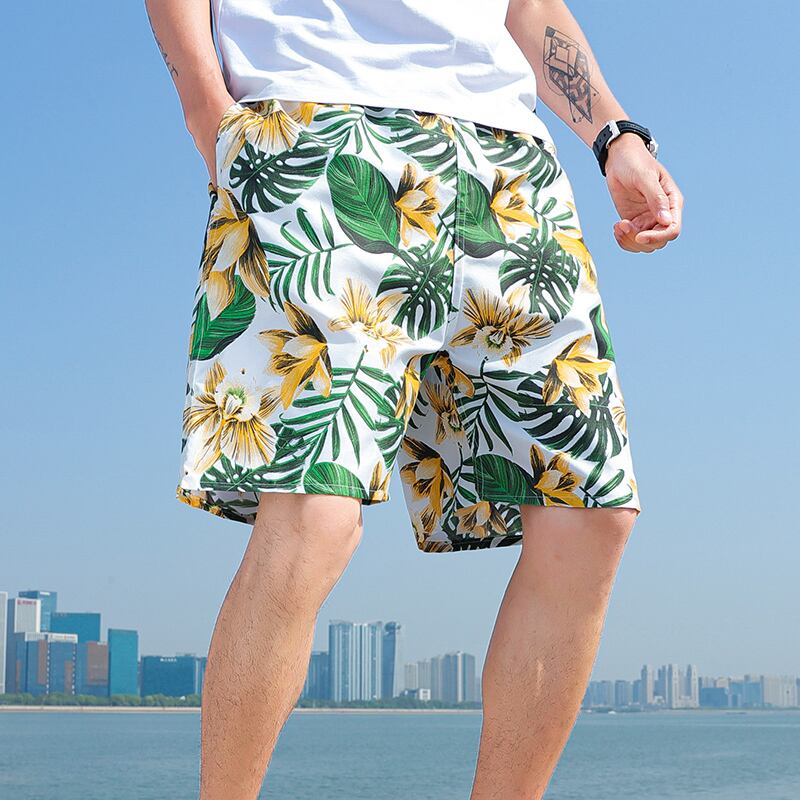 Shorts men's summer beach casual thin five-point pants men's flower big pants red beach pants ice silk breeches レッド カジュアル サマー 夏物 ビーチ ショーツ ブルマー シルク フラワーデザイン doushi70843578605