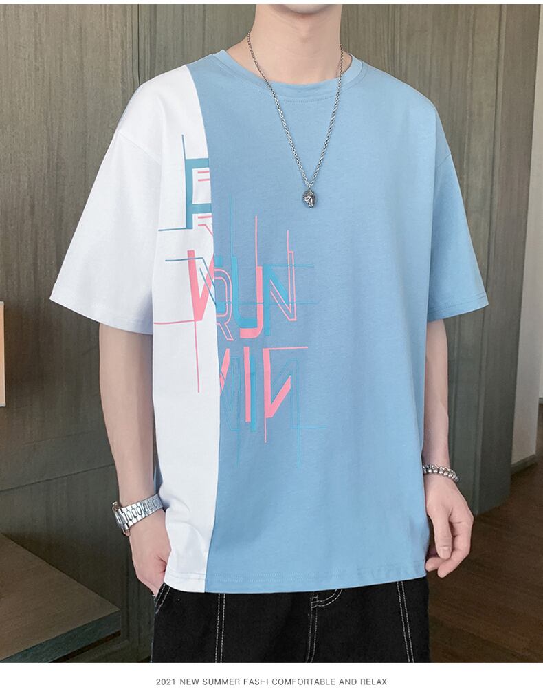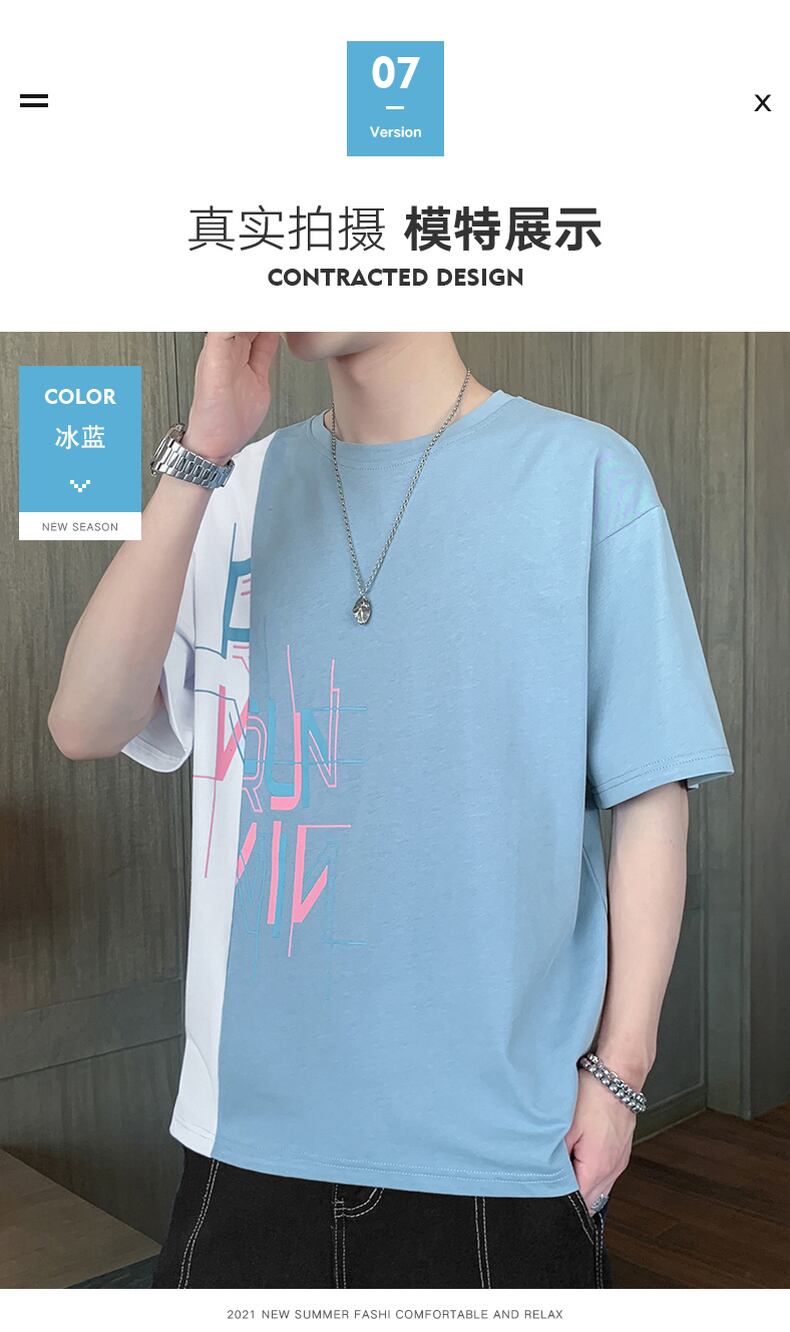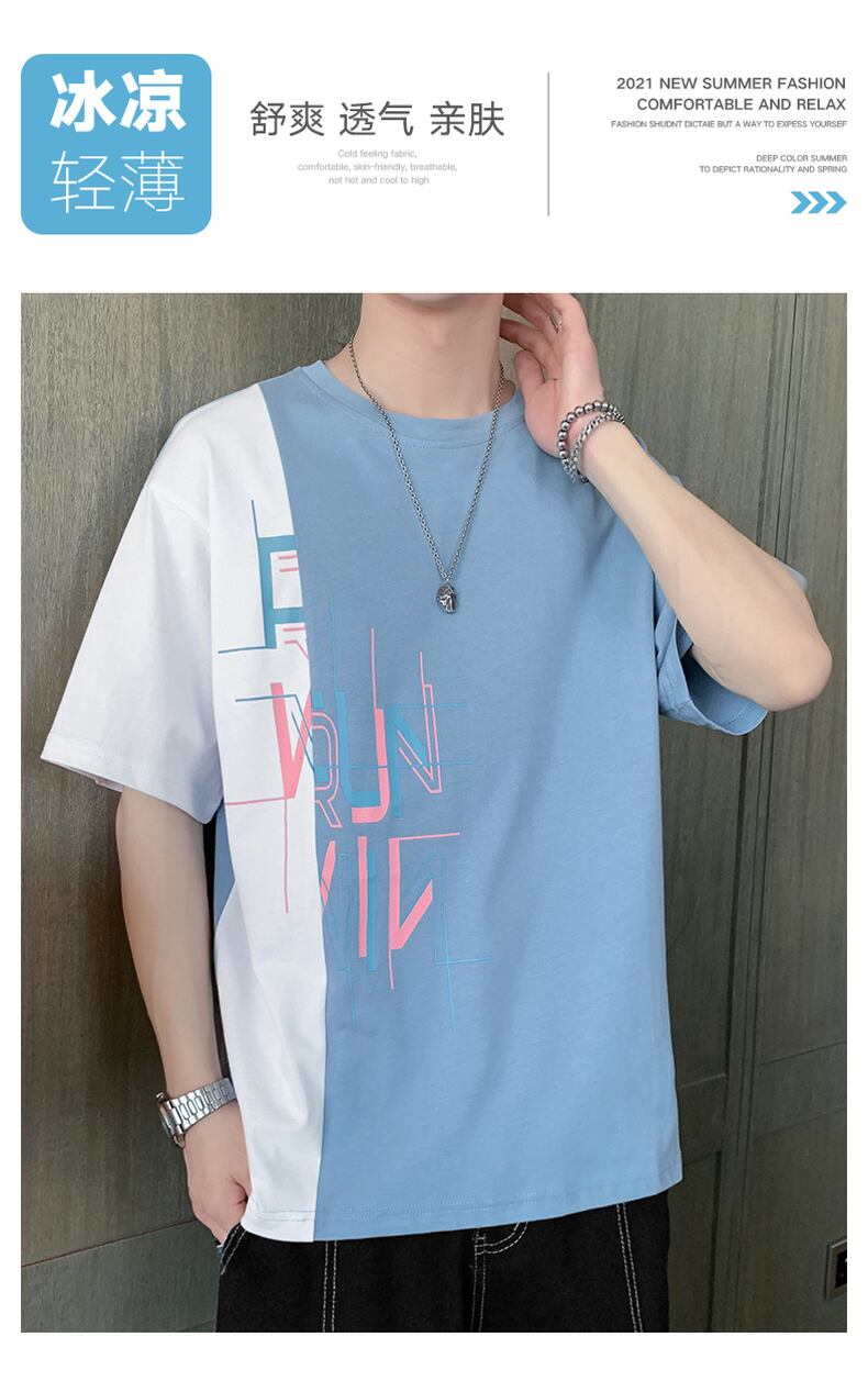 22 new short-sleeved t-shirt men's summer trend ins ice silk wild five-point sleeve Hong Kong style t-shirt top clothes men's clothing サマー 夏物 シルク Tシャツ doushi89827210390