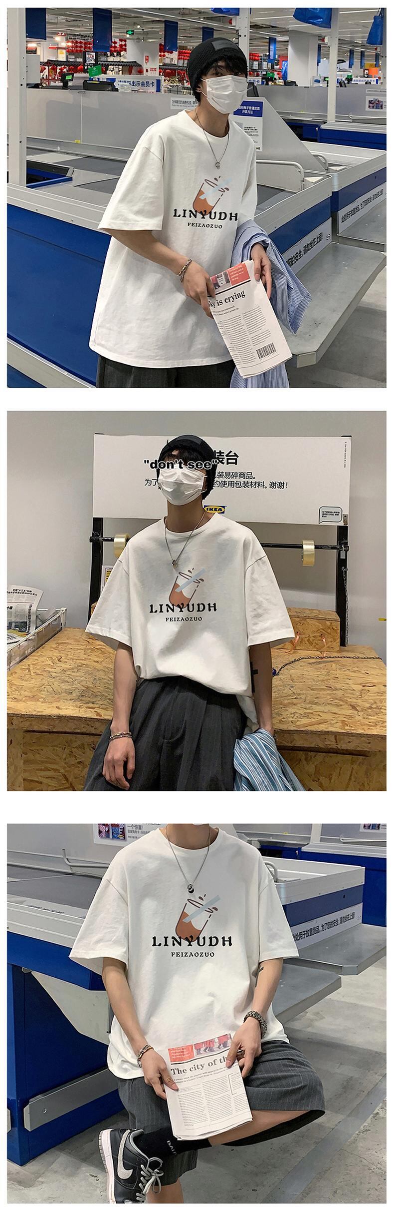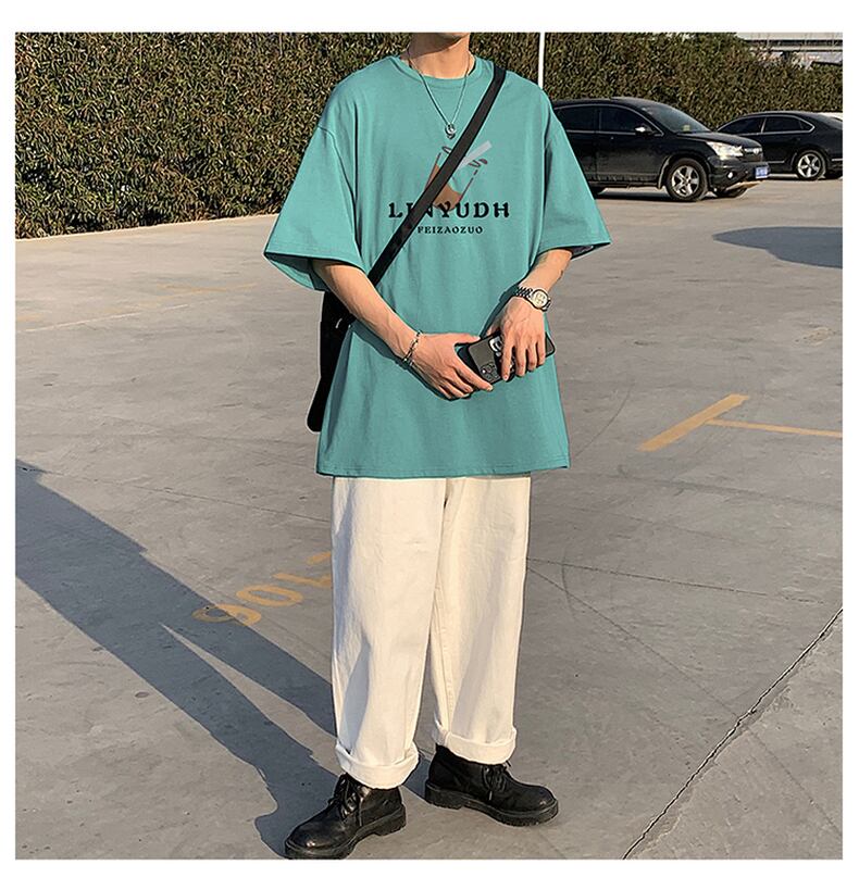 Summer version loose t-shirt short-sleeved men's printing youth new half-sleeve casual large size t-shirt round neck men's clothing カジュアル 大きめサイズ サマー 夏物 Oネック Tシャツ doushi22796603534