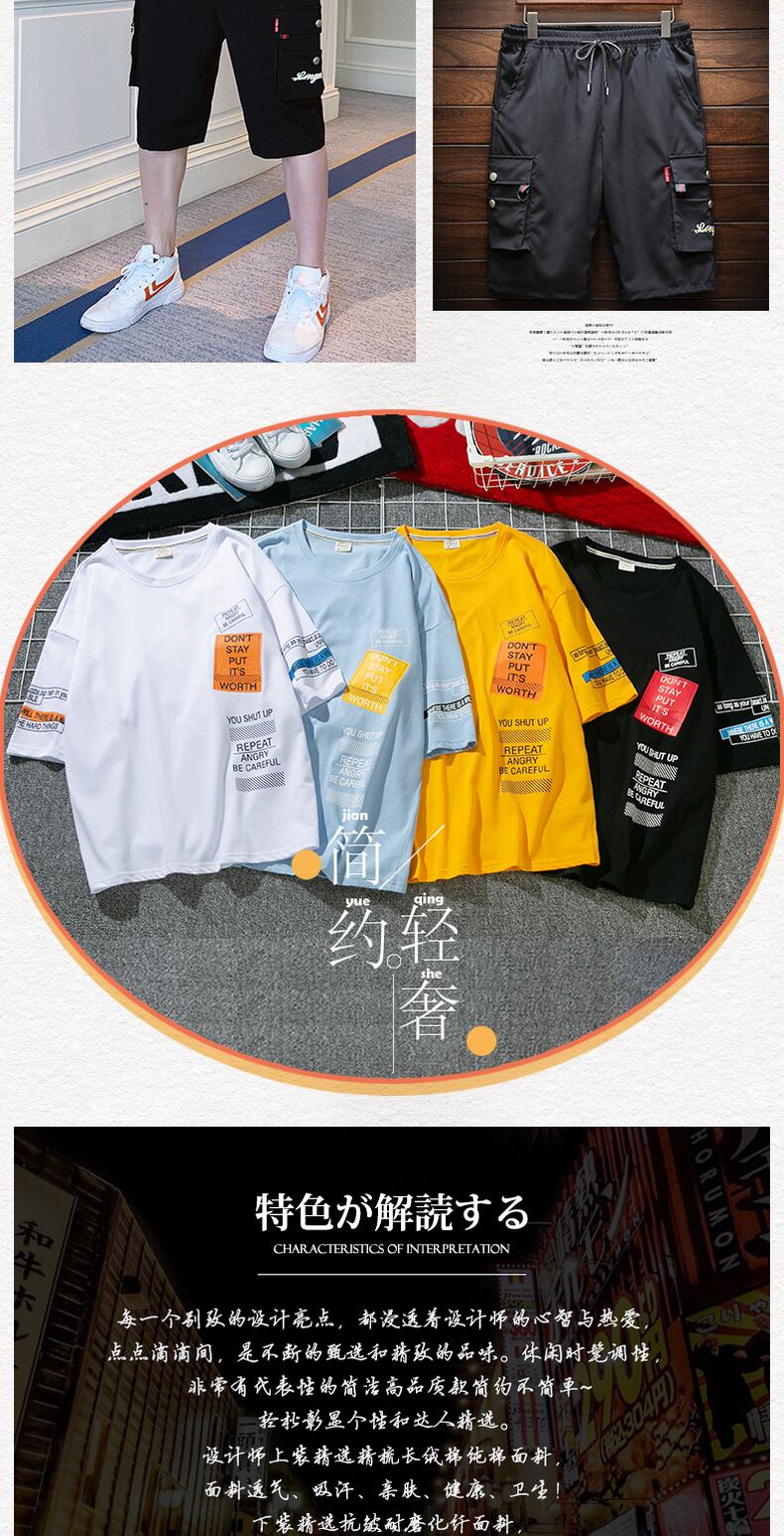 2022 new men's summer clothes junior high students handsome suit summer youth big children short-sleeved T-shirt men サマー 夏物 Tシャツ doushi49947962979