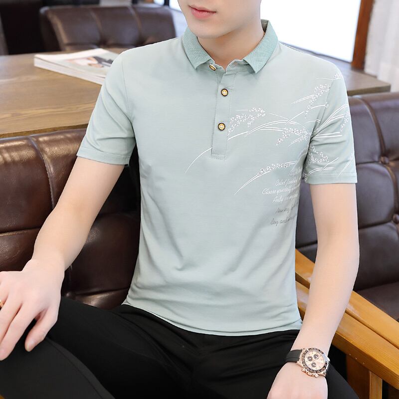 2022 summer new men's short-sleeved t-shirt youth slim-fit half-sleeved summer dress collar top clothes collar polo shirt サマー 夏物 Tシャツ doushi37648417133