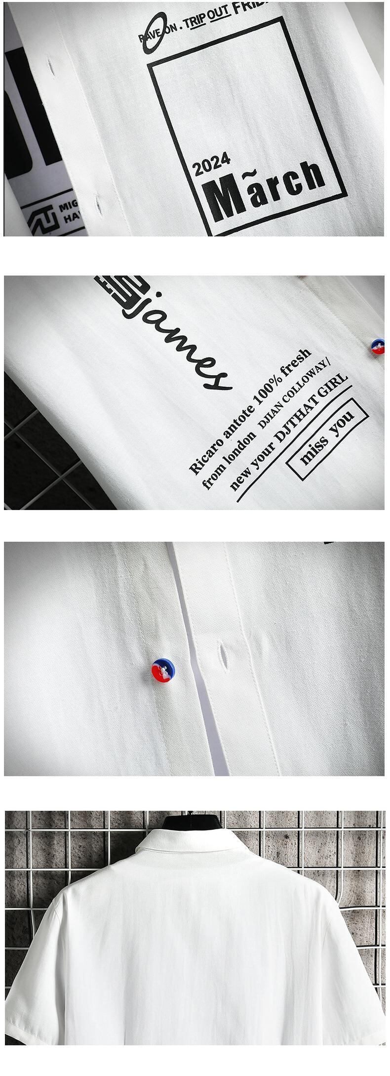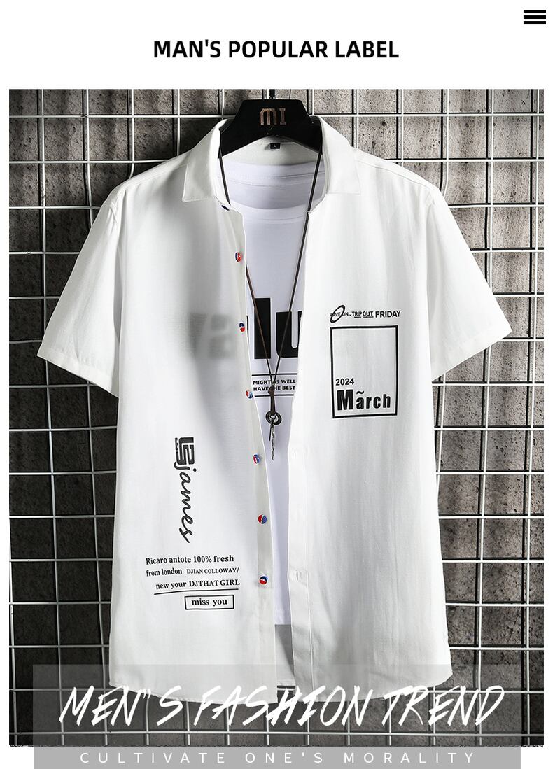 Short-sleeved shirt men's summer thin print white shirt men's casual slim top clothes ese style all-match shirt ホワイト カジュアル サマー 夏物 スリム doushi64934636015