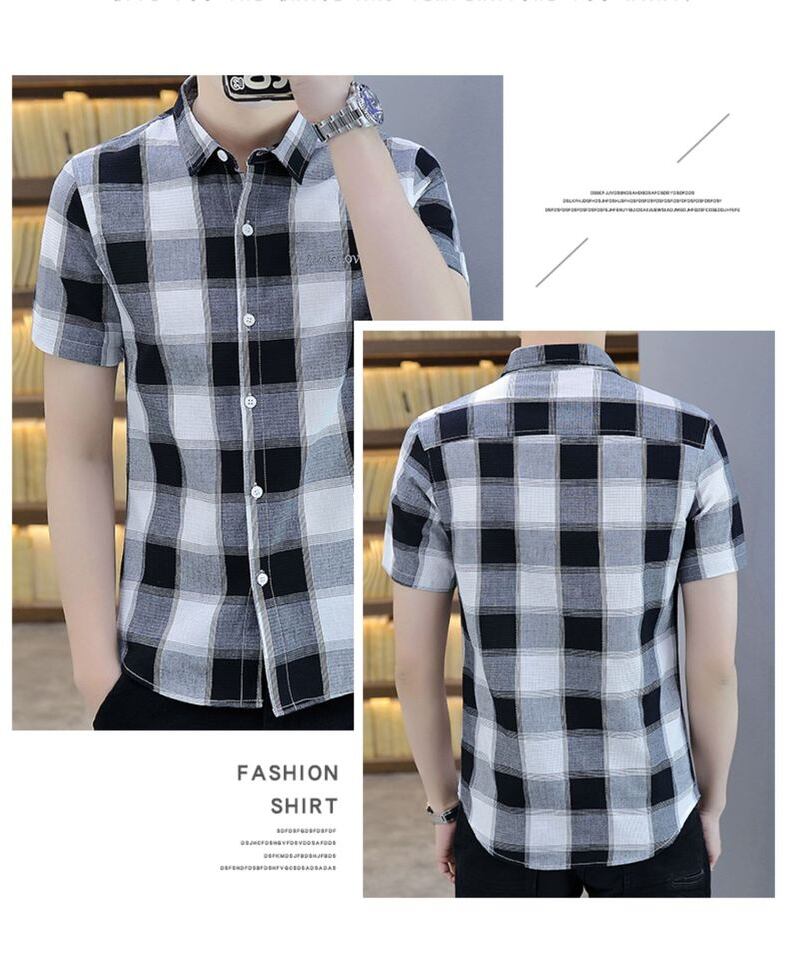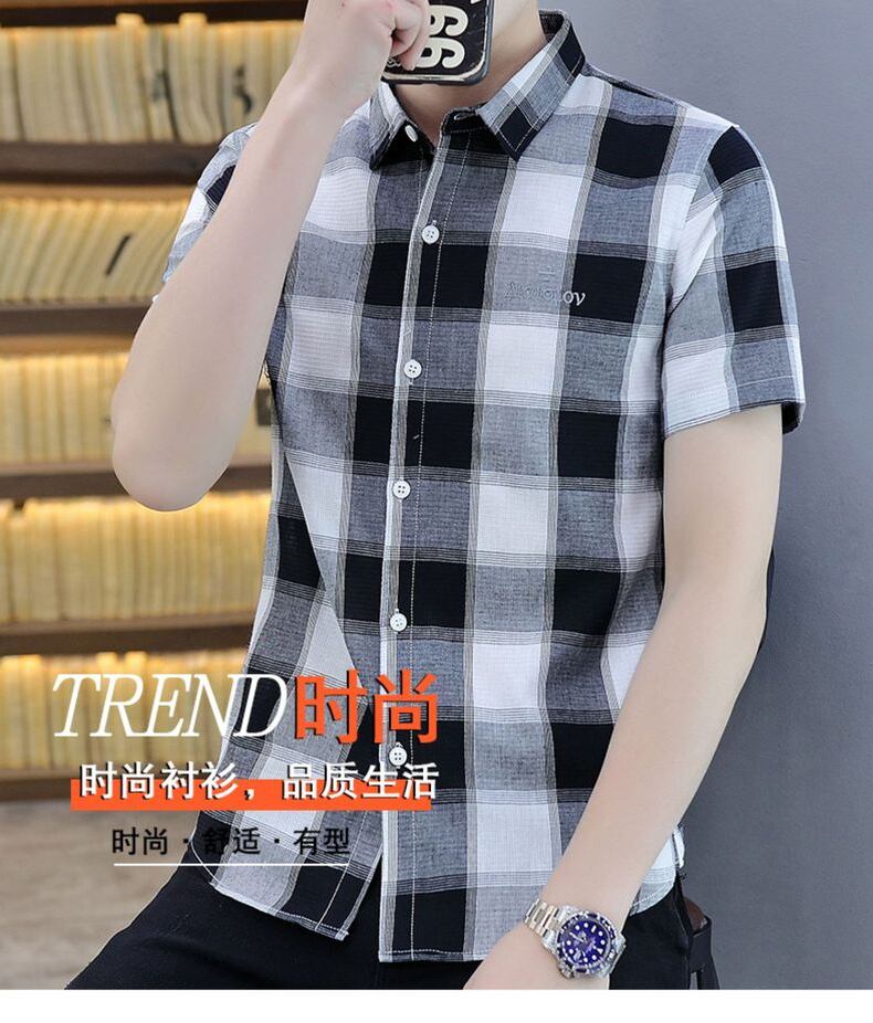 Summer short-sleeved shirt men's version of the trend casual wild plaid half-sleeved shirt handsome inch shirt men's top カジュアル サマー 夏物 doushi29938275920