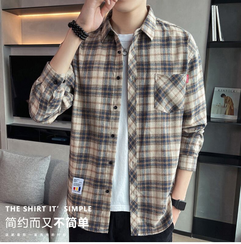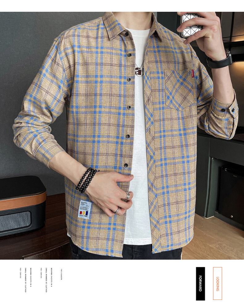Plaid shirt men's long-sleeved casual summer thin coat men's tops style ruffian handsome heavy shirt boys ロング カジュアル サマー 夏物 doushi67664539793