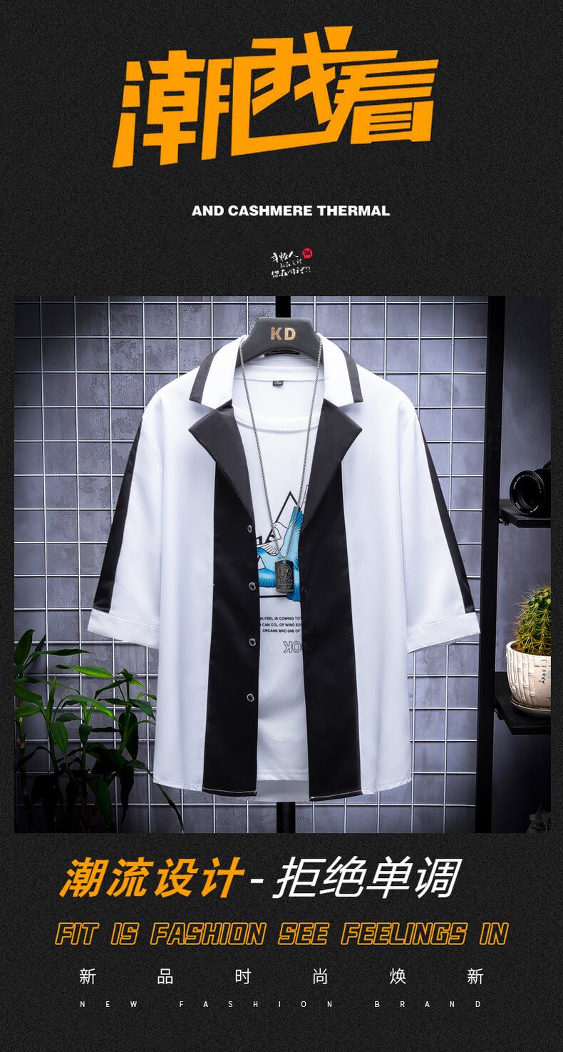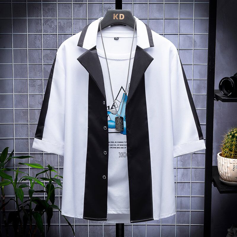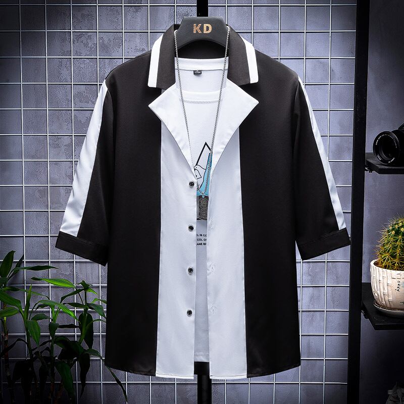 Short-sleeved shirt men's summer ice silk trend loose color matching lapel mid-sleeve jacket men's handsome large size thin shirt 大きめサイズ サマー 夏物 シルク doushi37263327116