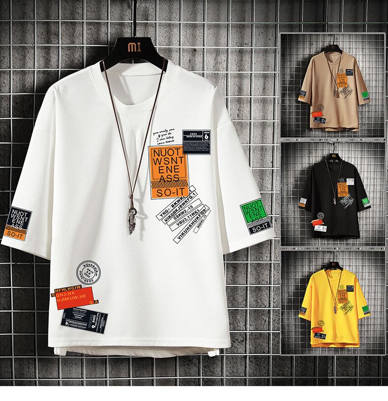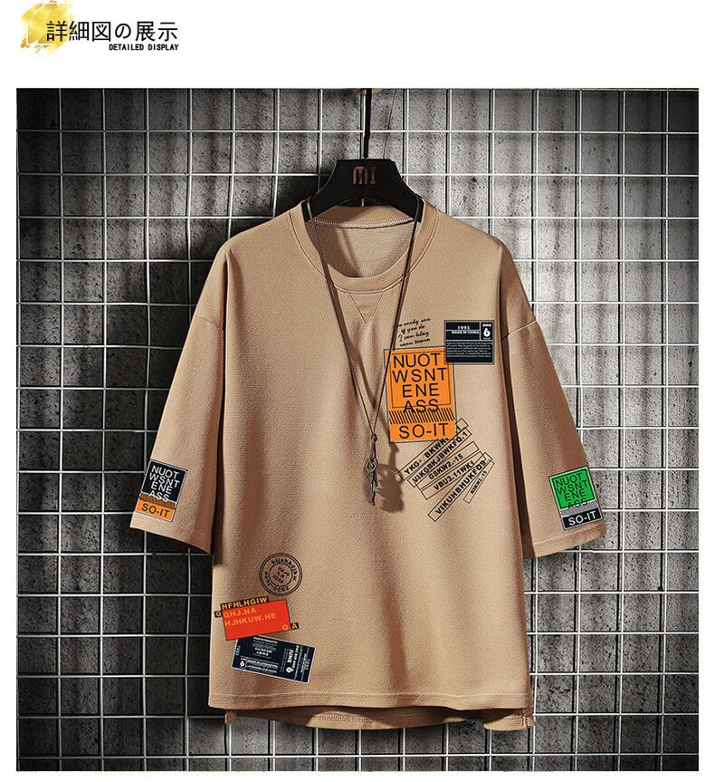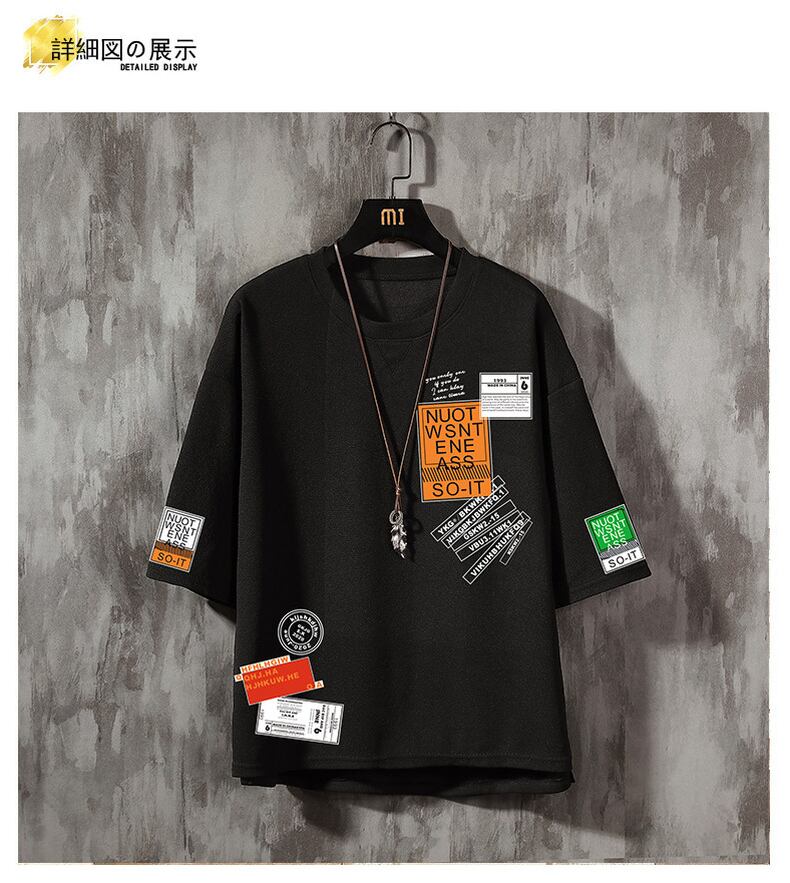 Short-sleeved t-shirt men's tide brand ins trend ice silk half-sleeve top clothes men's loose large size casual summer t-shirt カジュアル 大きめサイズ サマー 夏物 シルク Tシャツ doushi79999434072