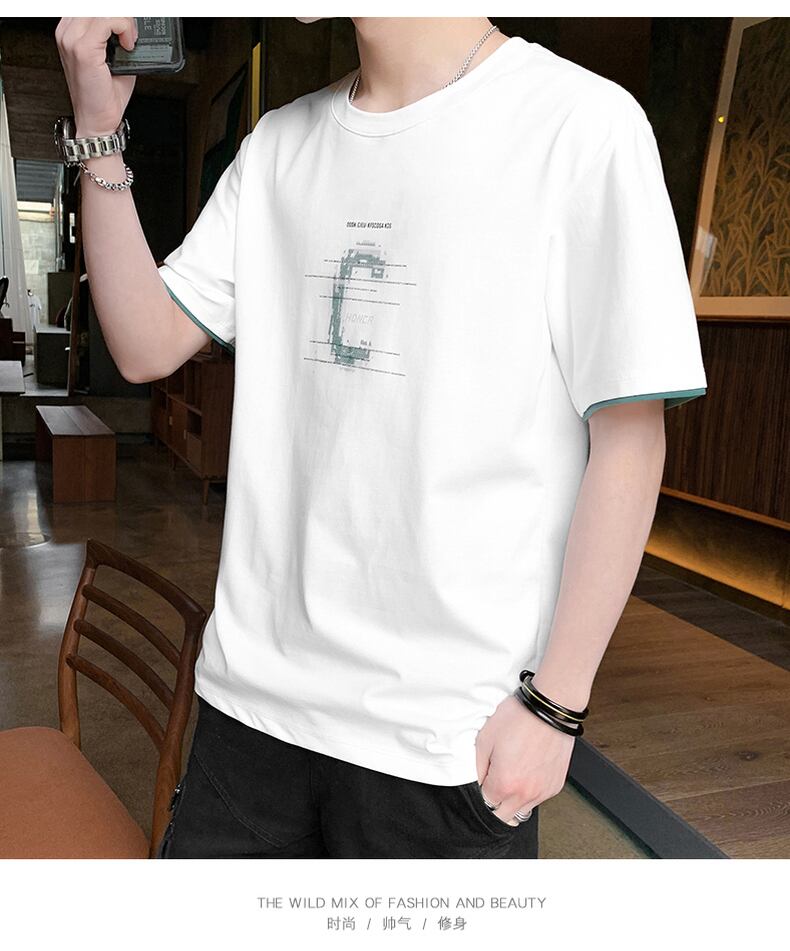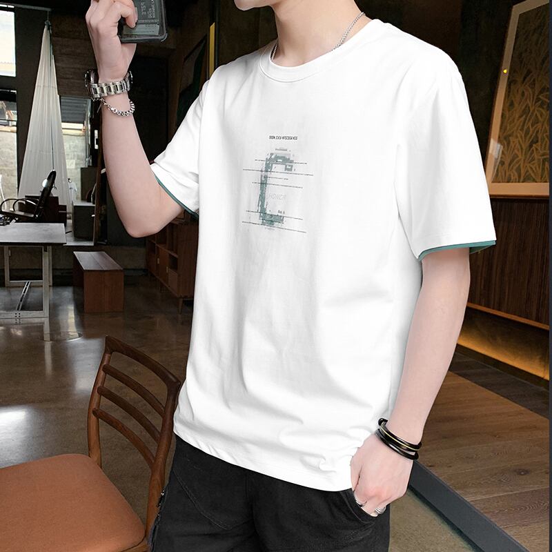 2022 new summer men's short-sleeved t-shirt trend half-sleeved body-shaping summer clothes tide brand men's all-match top サマー 夏物 Tシャツ doushi87027328003