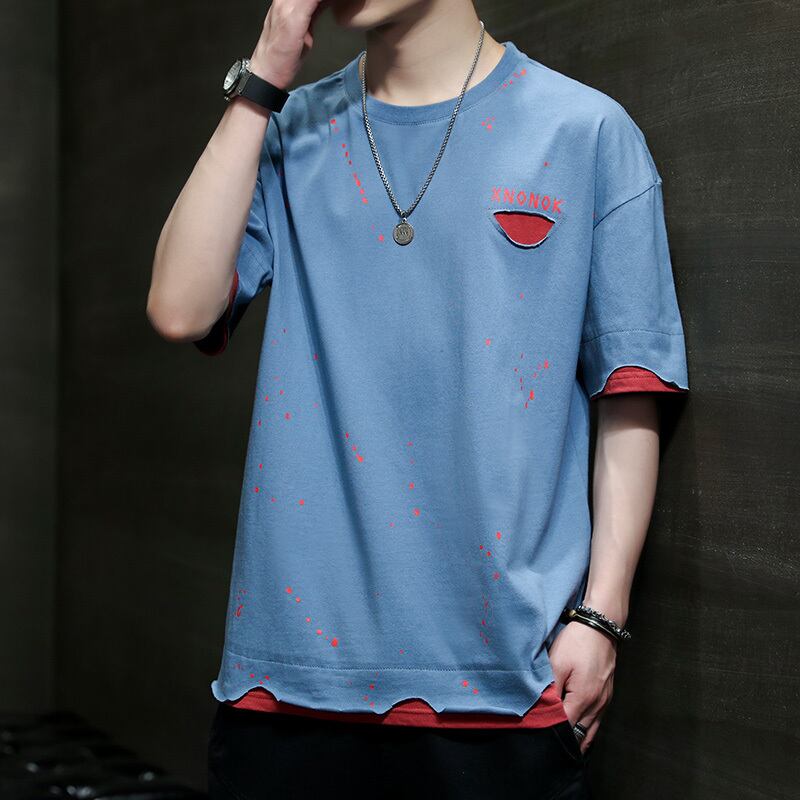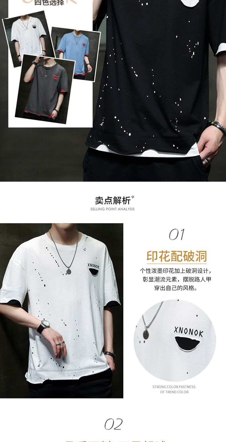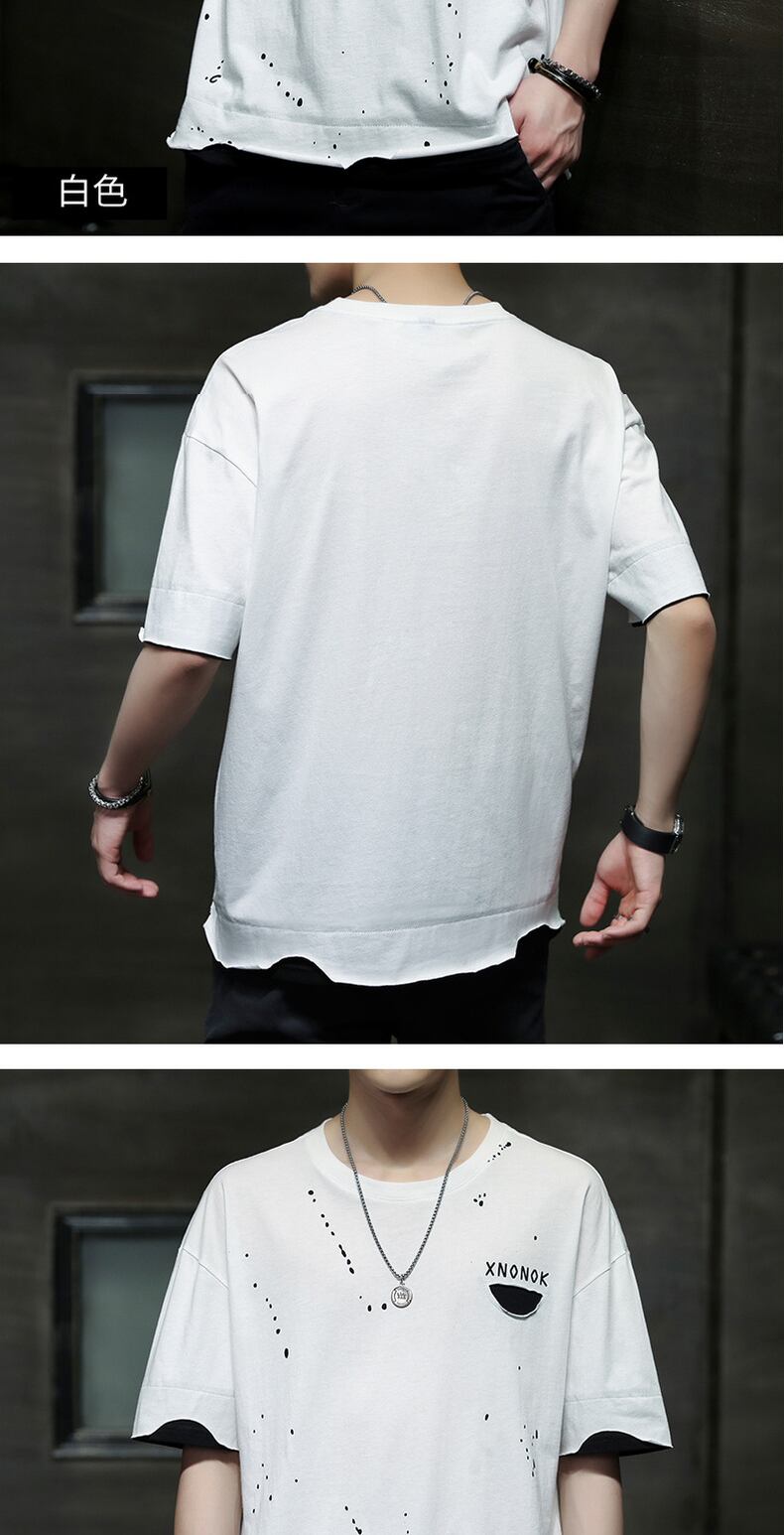 Summer 2022 short-sleeved T-shirt men's trend all-match loose youth ice silk tide brand cotton hole half-sleeve clothes コットン サマー 夏物 シルク Tシャツ doushi62019481929