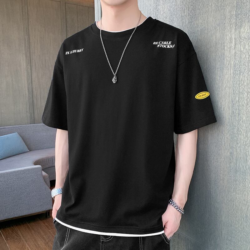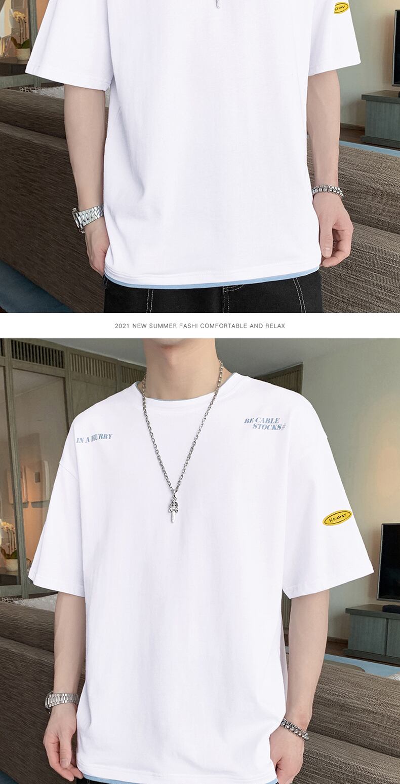 Men's short-sleeved T-shirt summer 2022 new half-sleeved loose ice-sensing national tide ice silk tide brand white large size clothes ホワイト 大きめサイズ サマー 夏物 シルク Tシャツ doushi26287399923