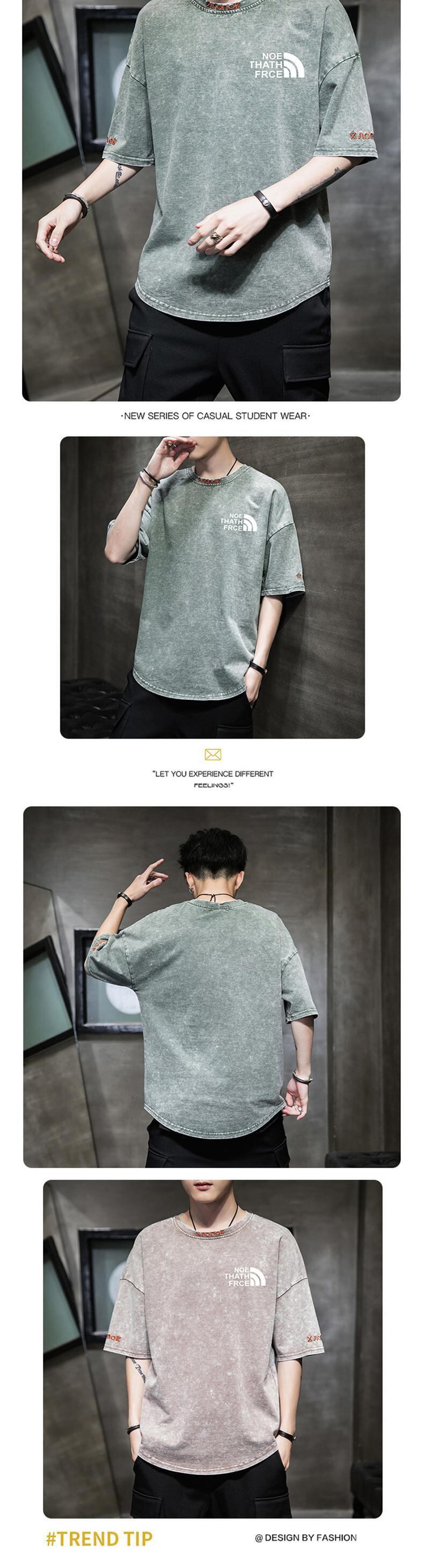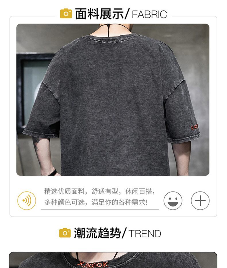 Short-sleeved T-shirt men's ins trend loose and casual all-match half-sleeved denim t-shirt summer 2022 new top clothes カジュアル サマー 夏物 Tシャツ doushi32884301735