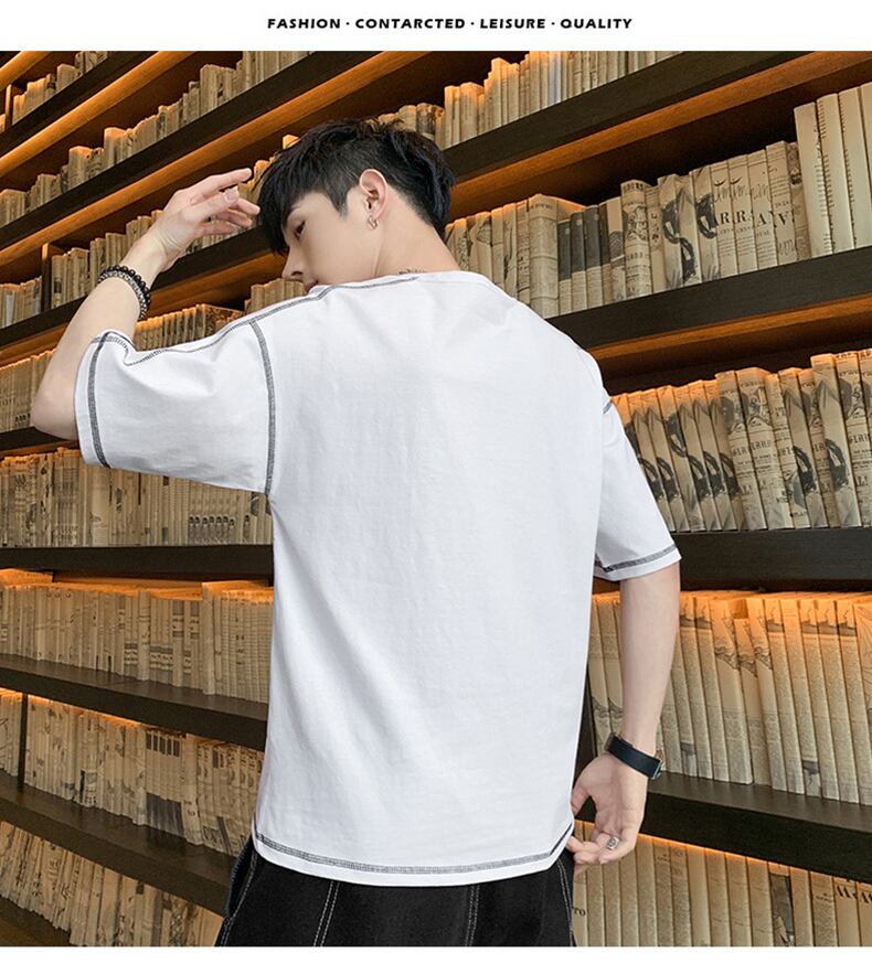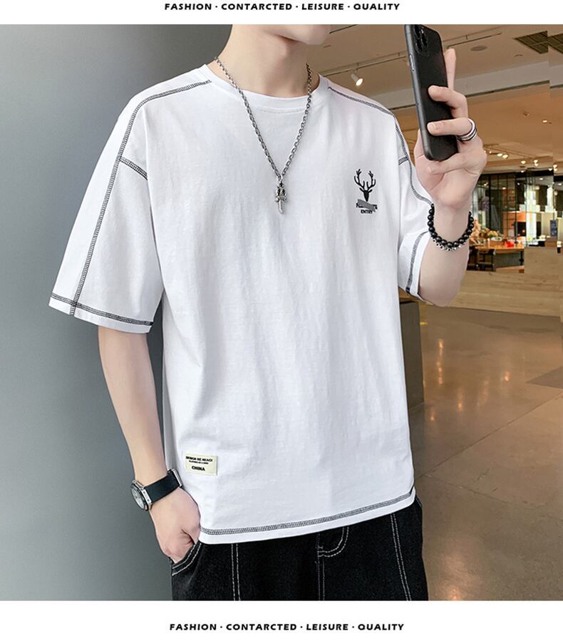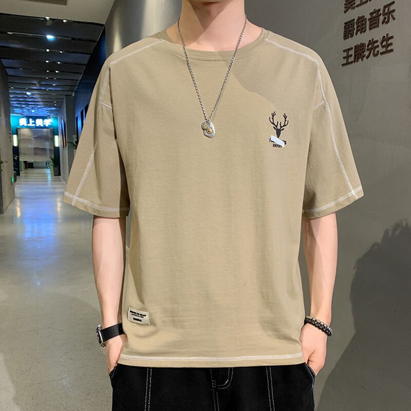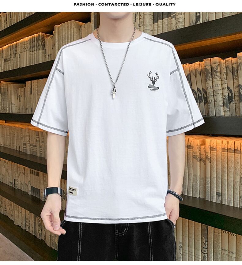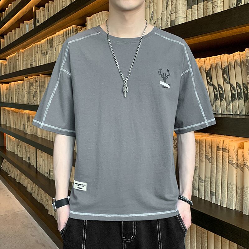 Men's short-sleeved 2022 new summer trend loose cotton t-shirt tide brand simple thin half-sleeved summer top コットン サマー 夏物 Tシャツ doushi74108288196