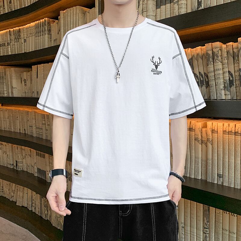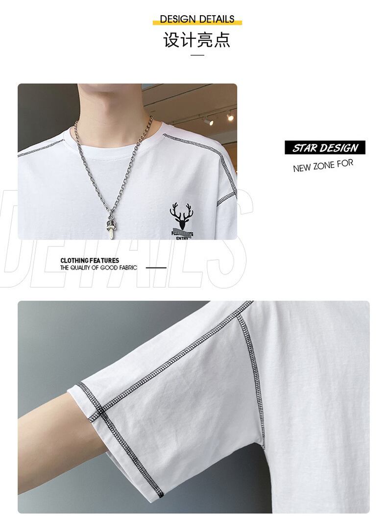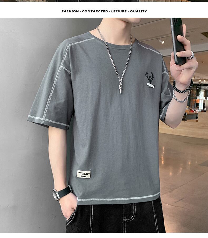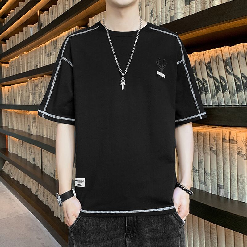 Men's short-sleeved 2022 new summer trend loose cotton t-shirt tide brand simple thin half-sleeved summer top コットン サマー 夏物 Tシャツ doushi74108288196