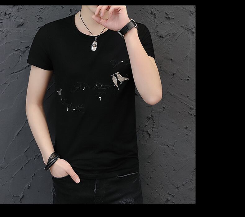 Short-sleeved T-shirt men's cotton round neck 2022 summer new version slim embroidery half sleeve trend men's clothing コットン 半袖 ハーフスリーブ 刺繍 サマー 夏物 Oネック スリム Tシャツ doushi12842549297