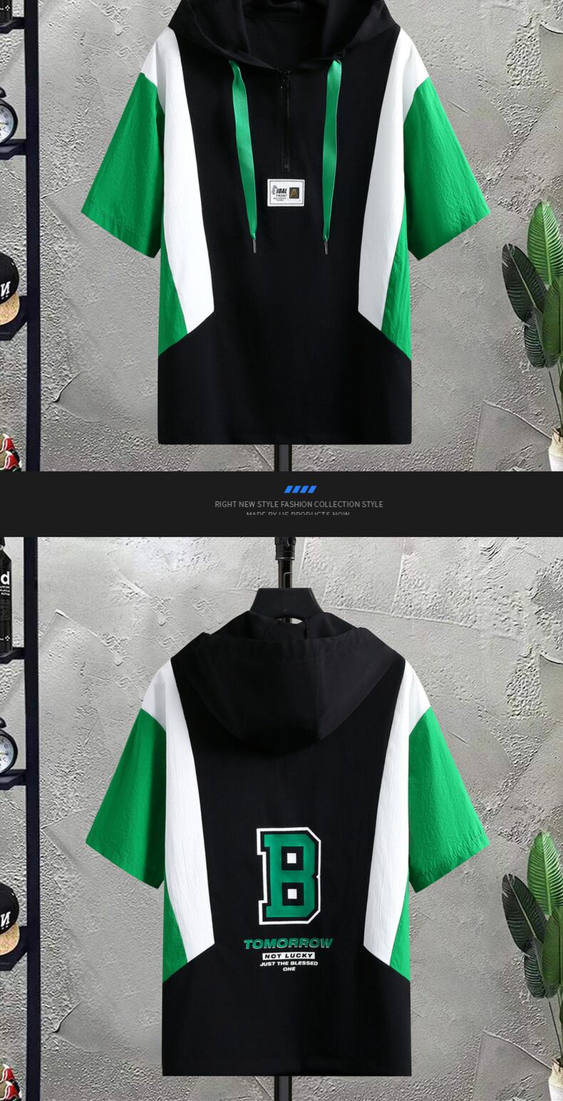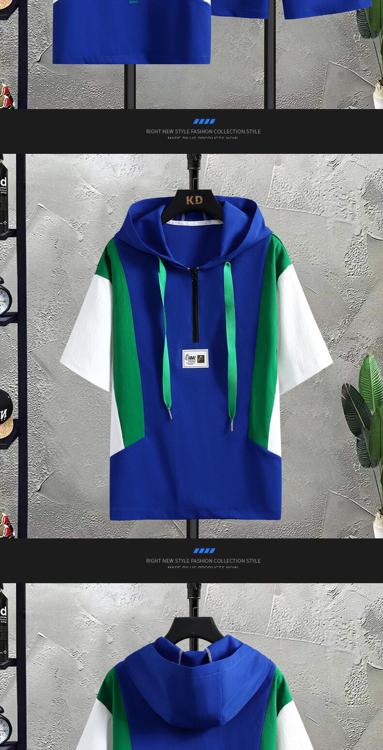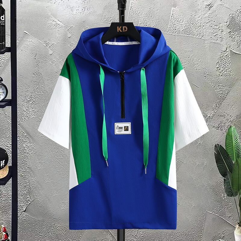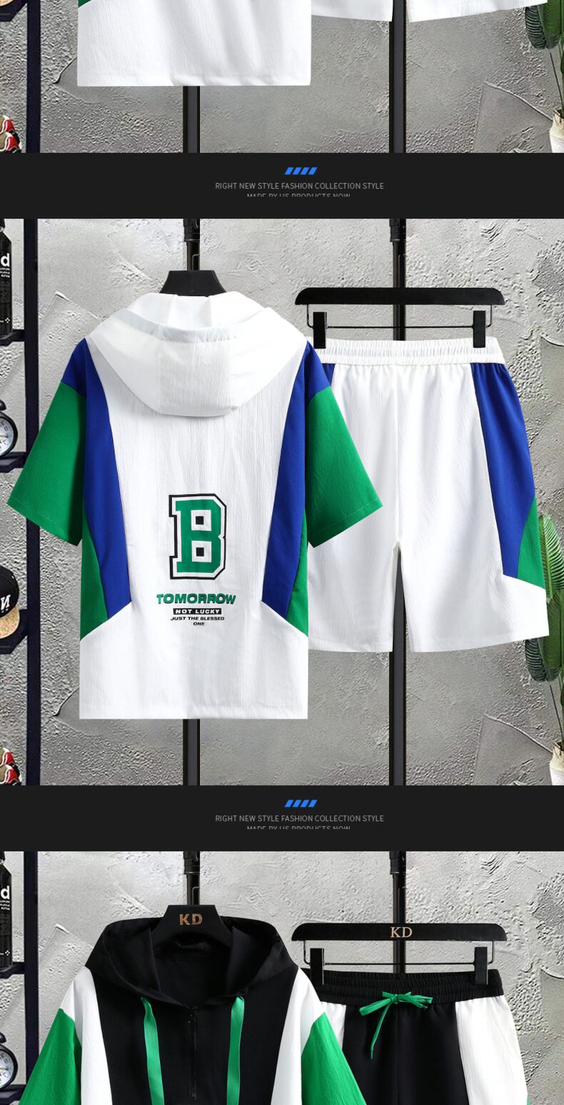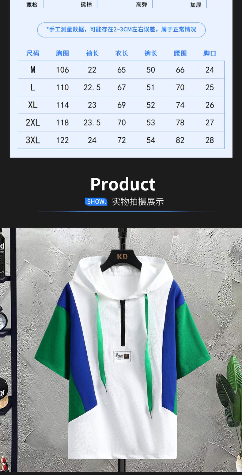Summer ice silk short-sleeved t-shirt men's casual sports suit youth student hooded shorts two-piece loose カジュアル サマー 夏物 ショーツ ブルマー シルク Tシャツ doushi90467546677