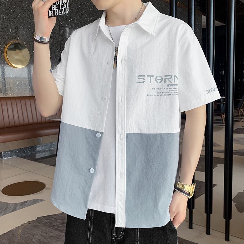 Short-sleeved shirts men's summer 2022 new trend casual men's shirts boys loose tide brand clothes coats カジュアル シャツ サマー 夏物 doushi35286259890