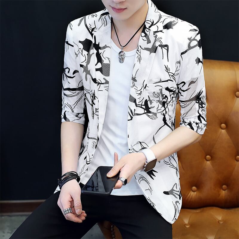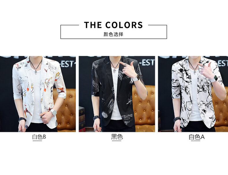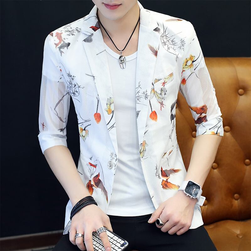 Summer three-quarter sleeve suit men's version of the sunscreen hollow men's jacket flower sleeves thin casual net red small suit レッド カジュアル サマー 夏物 フラワーデザイン doushi30394535081