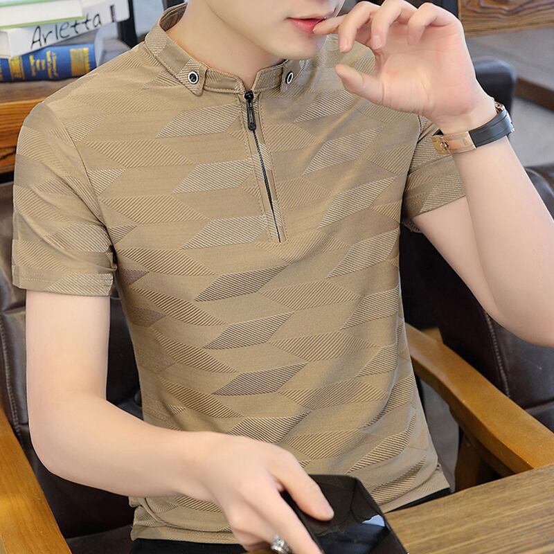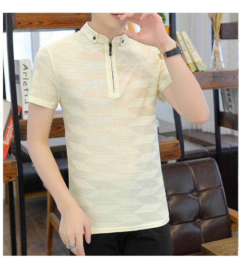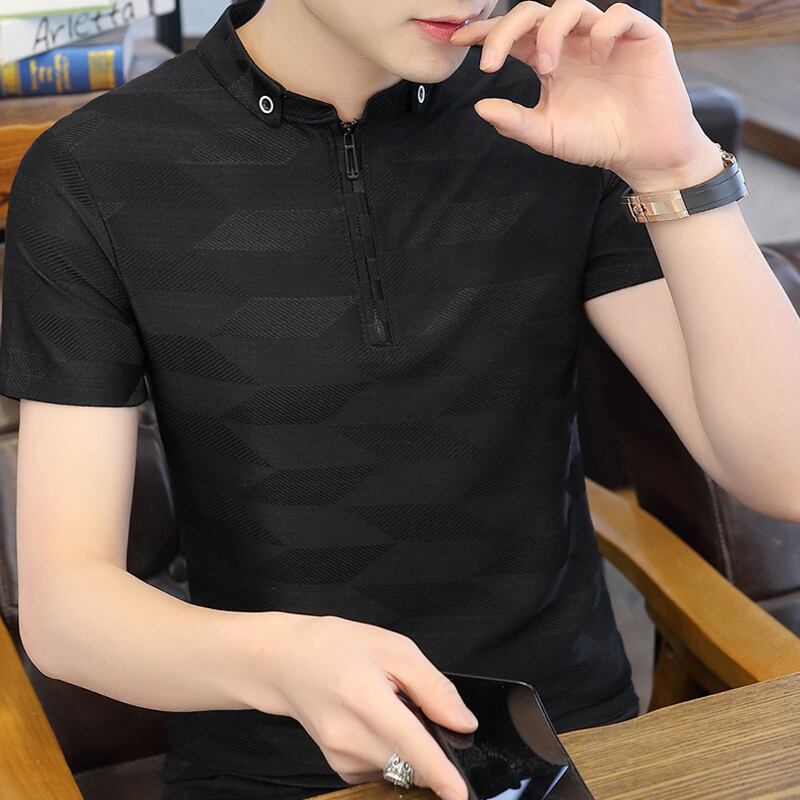 T-shirt men's short-sleeved 2022 summer new trend casual half-sleeved t-shirt slim ice silk POLO shirt men's clothes カジュアル サマー 夏物 スリム シルク Tシャツ doushi59042740492