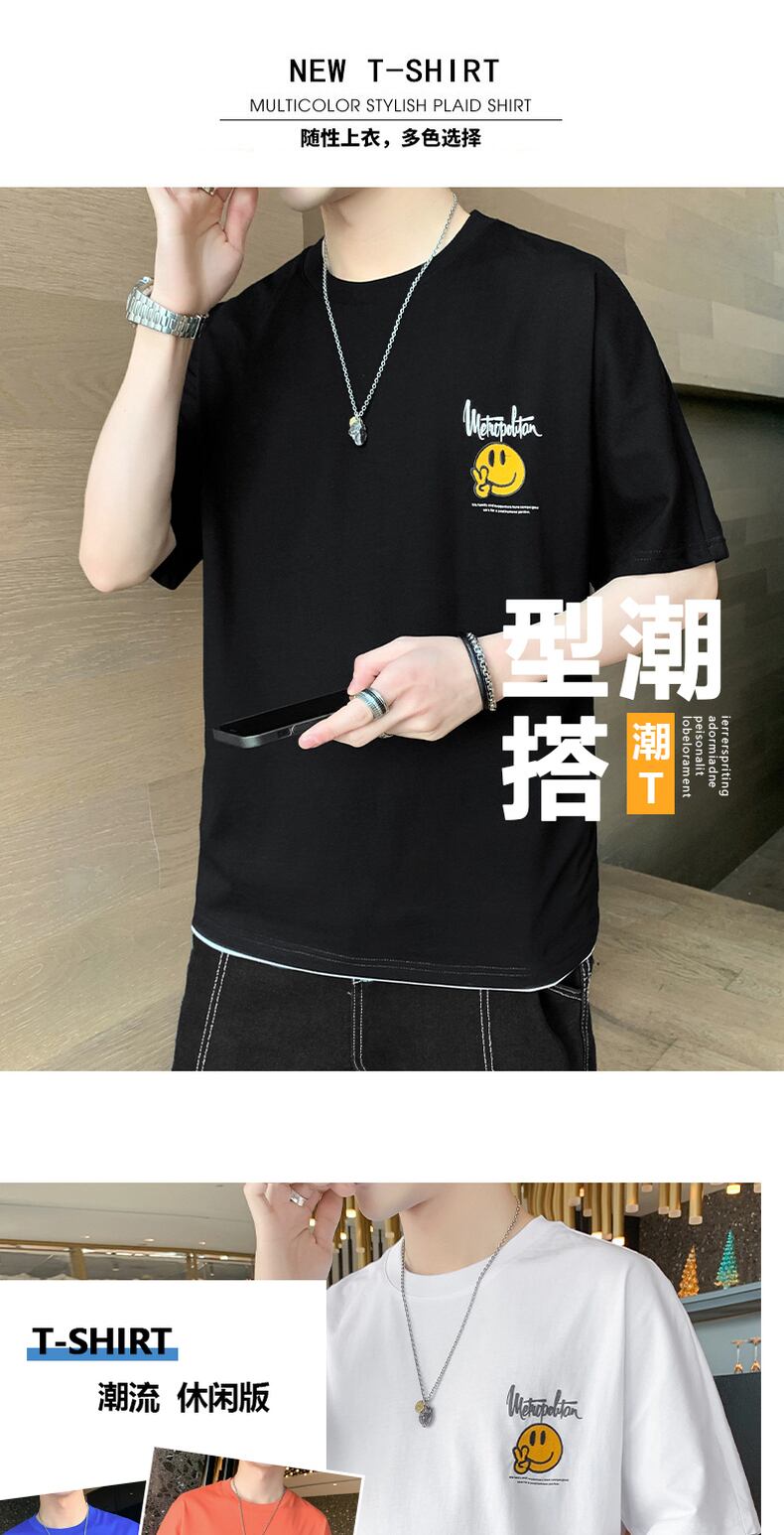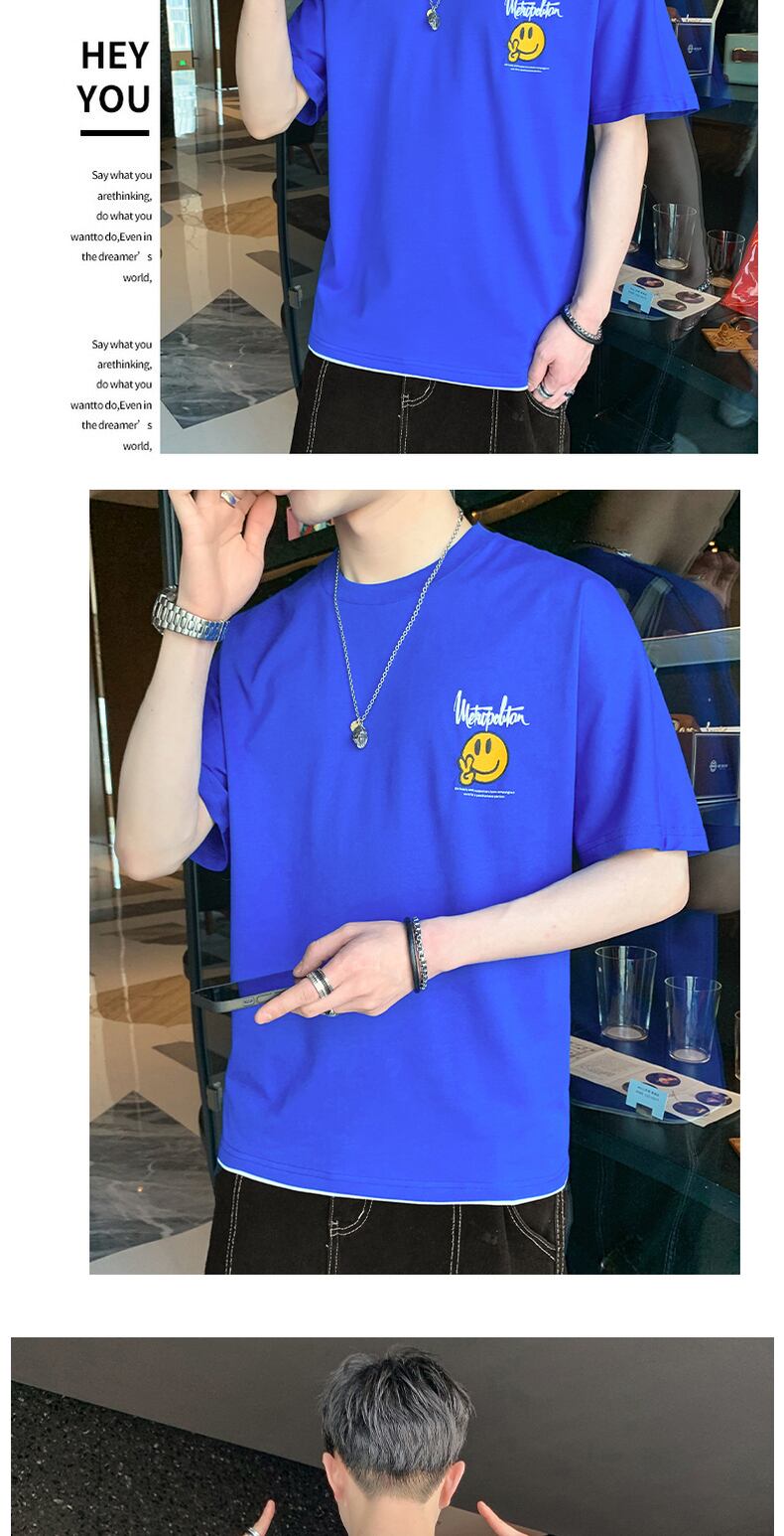 Klein blue short-sleeved T-shirt men's 2022 summer new fashion brand loose trend casual all-match half-sleeve t-shirt ブルー カジュアル サマー 夏物 Tシャツ doushi92936889807