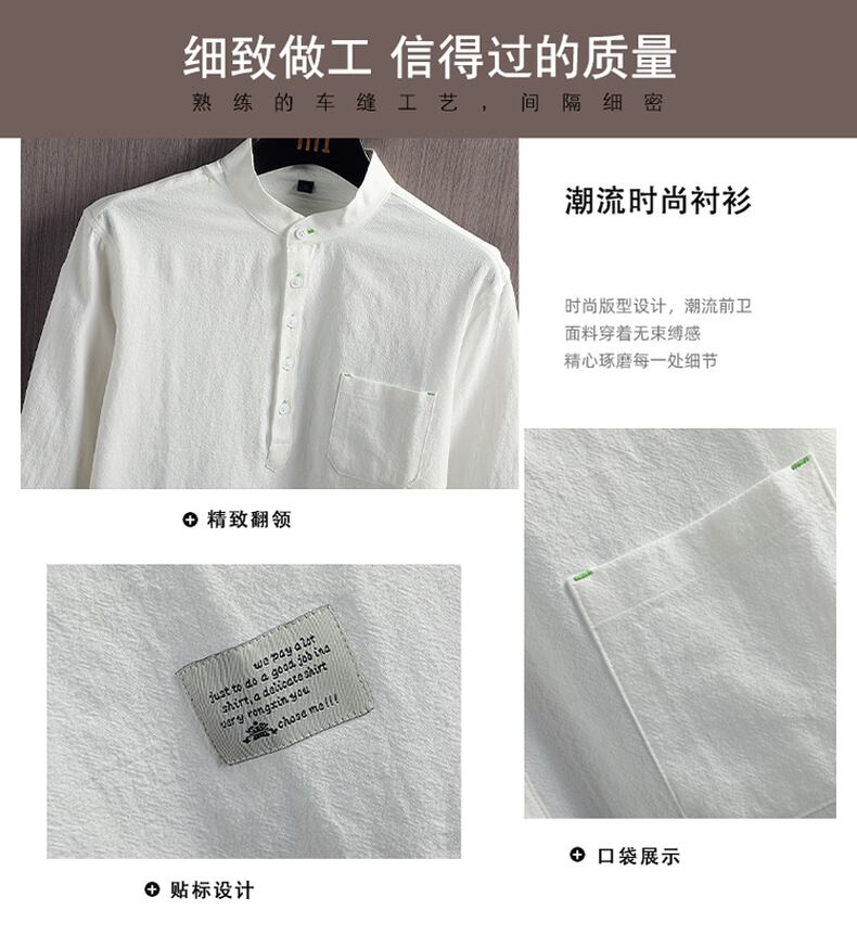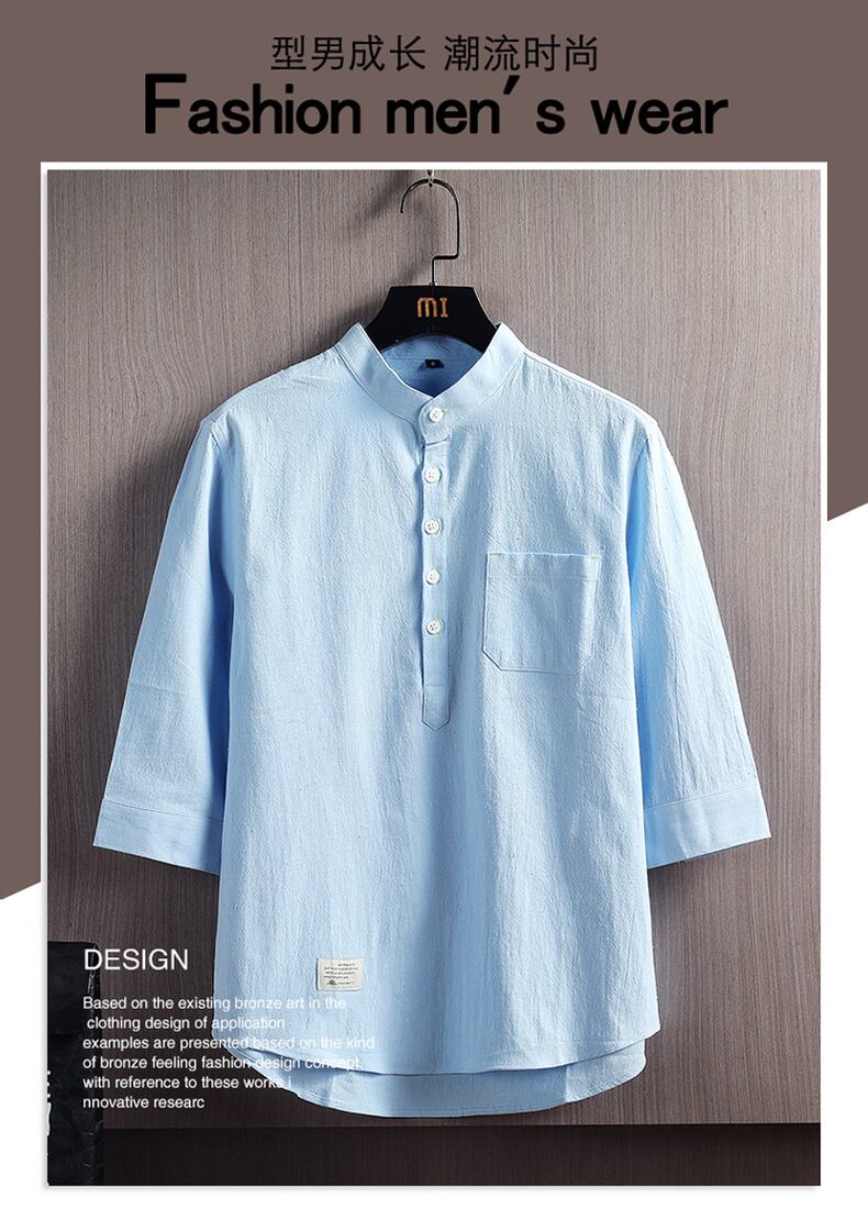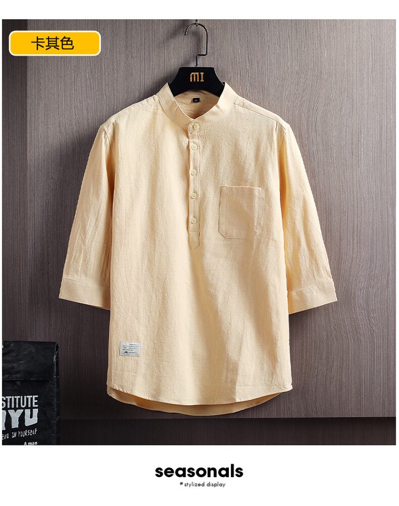 Chinese style linen shirt men's stand collar loose casual three-quarter sleeve shirt cotton linen 7-point mid-sleeve cotton jacket コットン カジュアル doushi71829695033