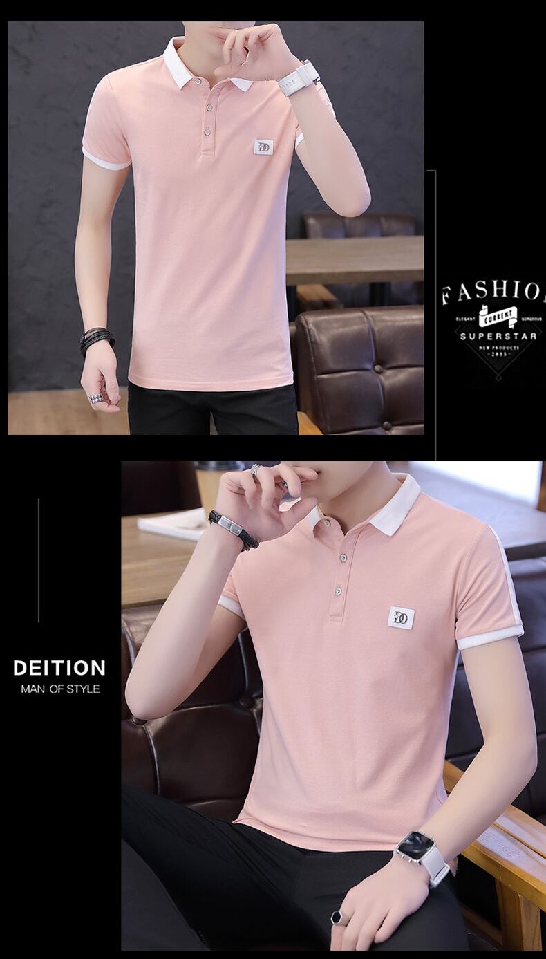 Short-sleeved t-shirt men's summer version trend pink polo shirt tide brand lapel half-sleeve top clothes student t-shirt ピンク サマー 夏物 Tシャツ doushi4381257737