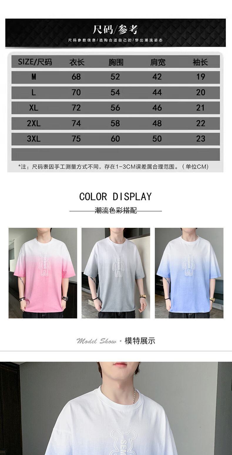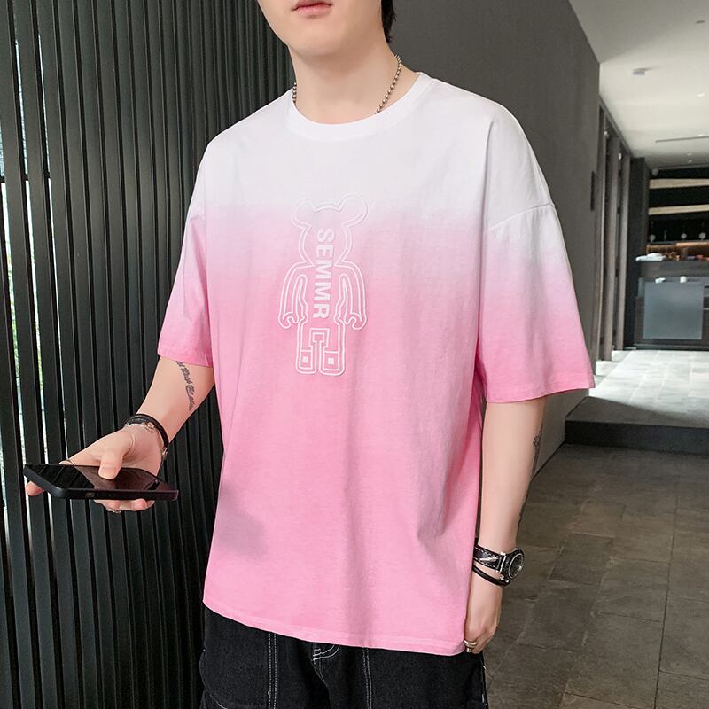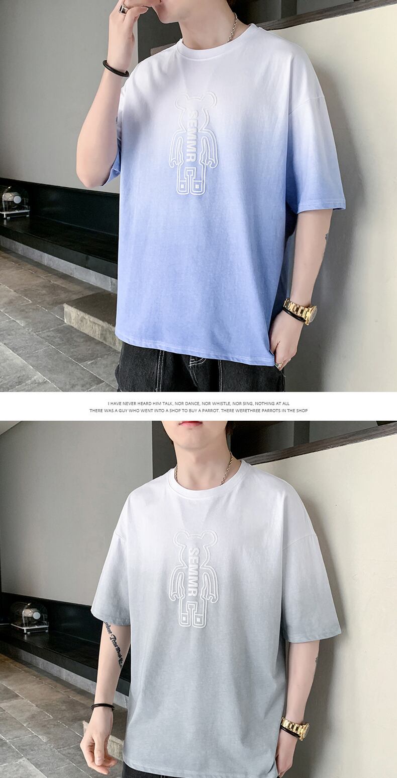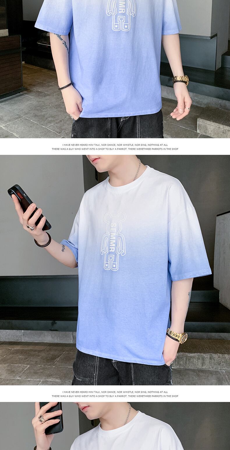 Short-sleeved t-shirt men's 2022 new version trend all-match casual gradient color T-shirt top clothes men's bottoming shirt カジュアル Tシャツ doushi32822362179