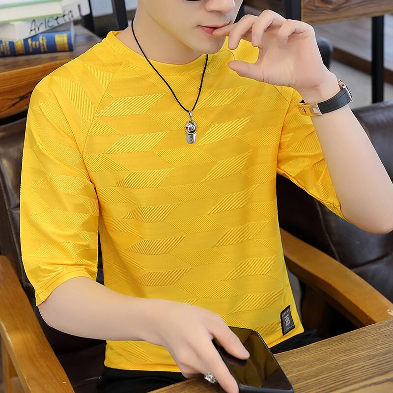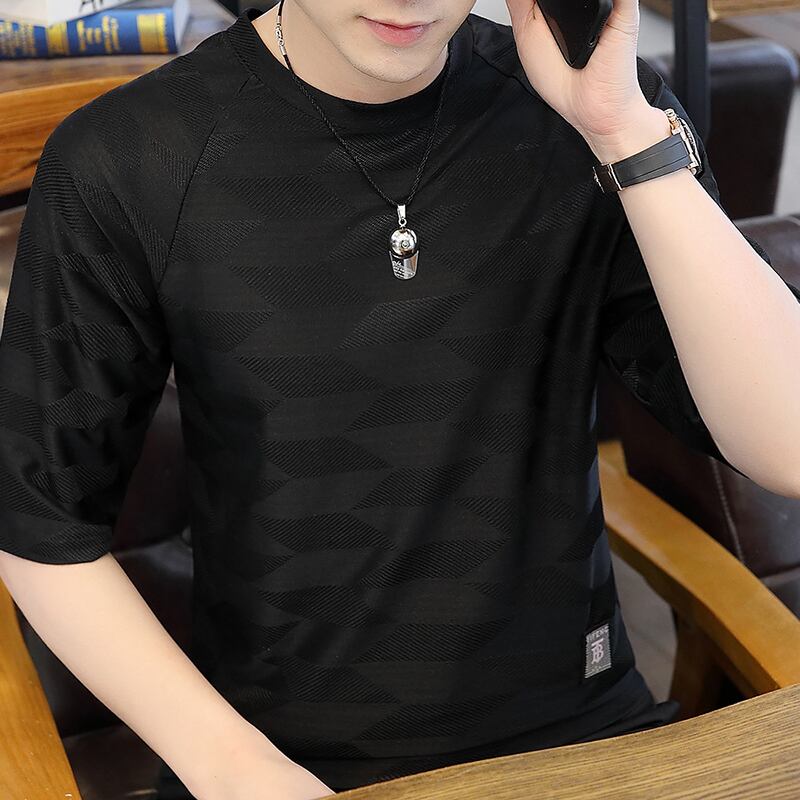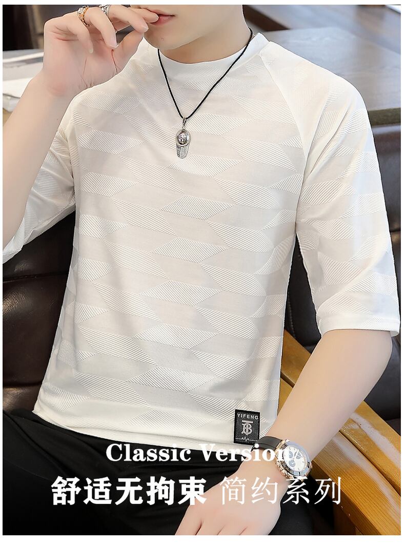 Seven-point sleeve men's ice silk personality tide brand short-sleeved t-shirt 2022 summer new five-point sleeve men's 7-point 5-point mid-sleeve サマー 夏物 シルク Tシャツ doushi24864519746