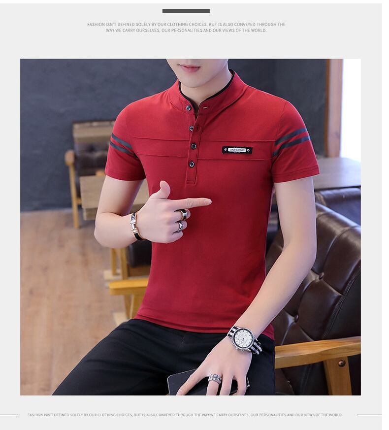 Men's short-sleeved t-shirt summer self-cultivation stand-up collar half-sleeved thin men's polo shirt 2022 shirt handsome trend サマー 夏物 Tシャツ doushi68173636623
