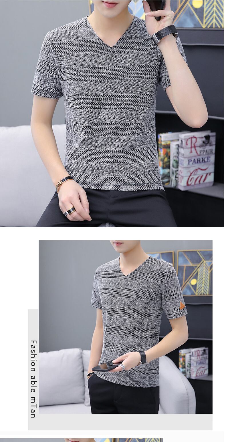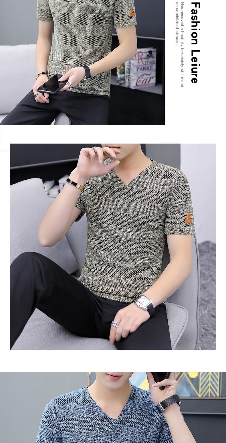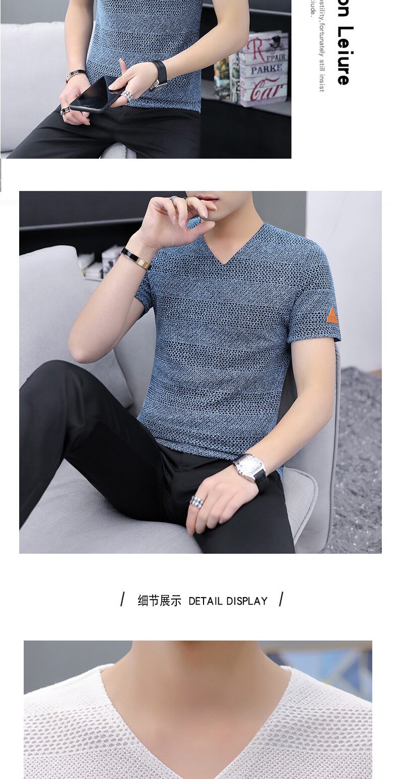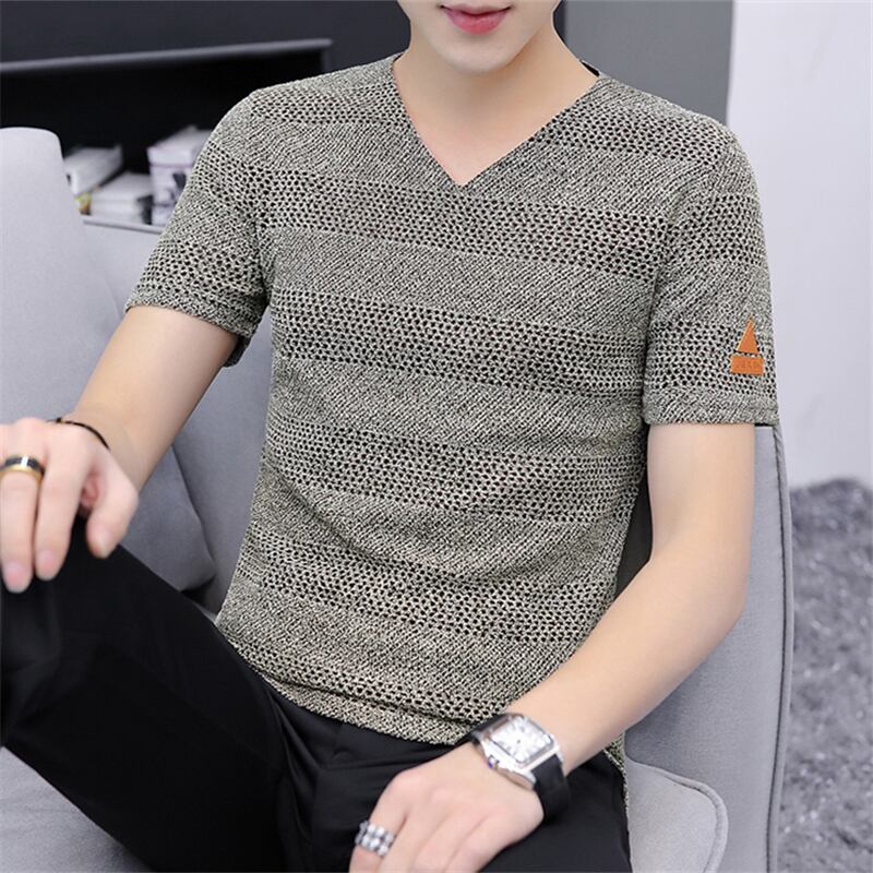 2022 summer new ice silk hollow men's short-sleeved T-shirt knitted mesh V-neck half-sleeved small shirt thin section T-shirt trend サマー 夏物 メッシュ Vネック シルク Tシャツ doushi62022533424