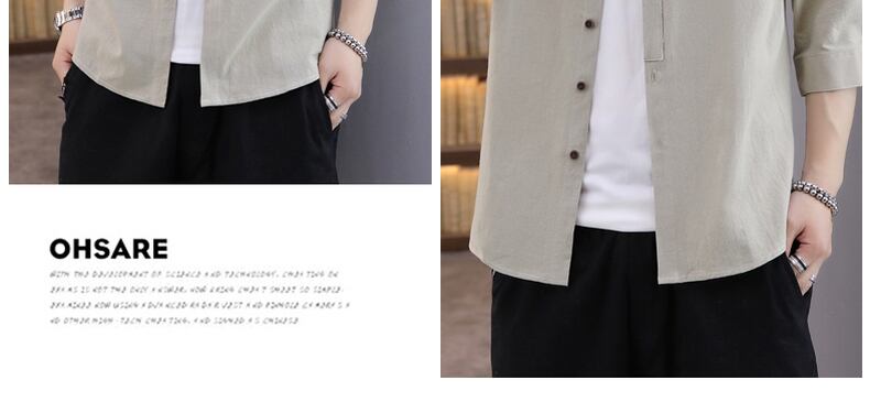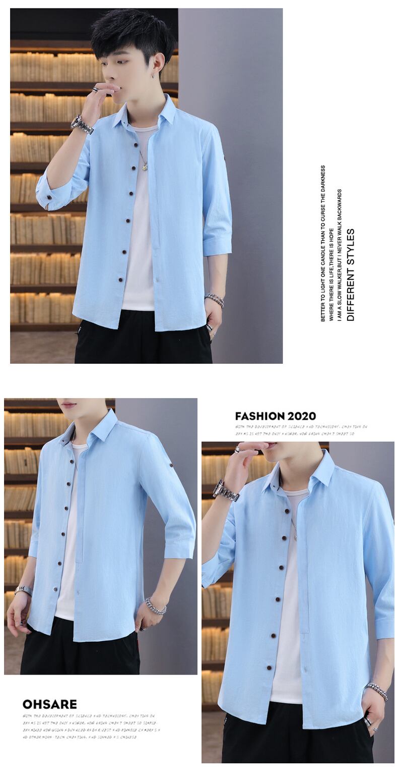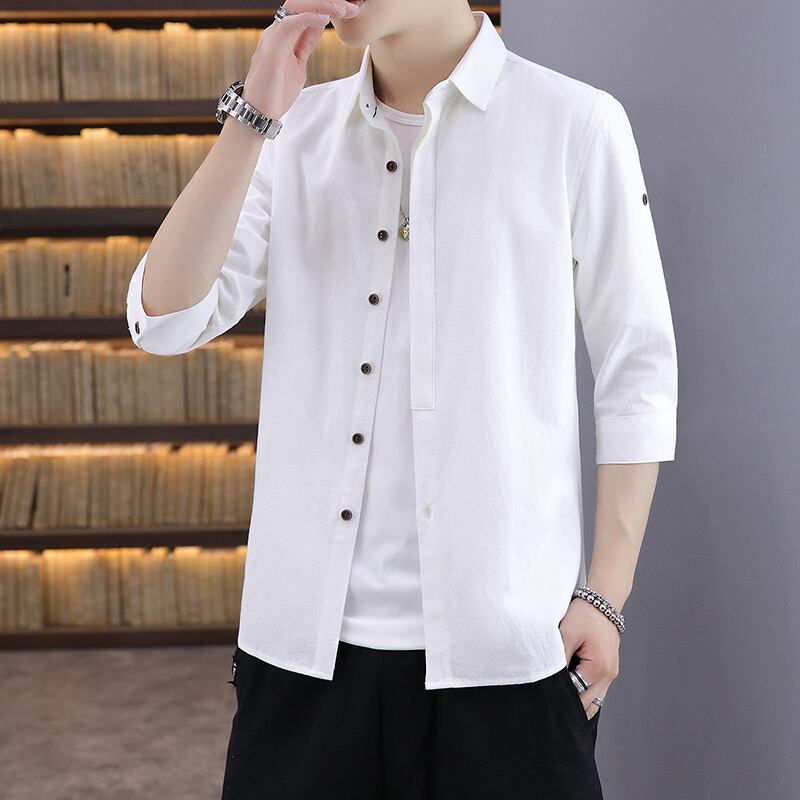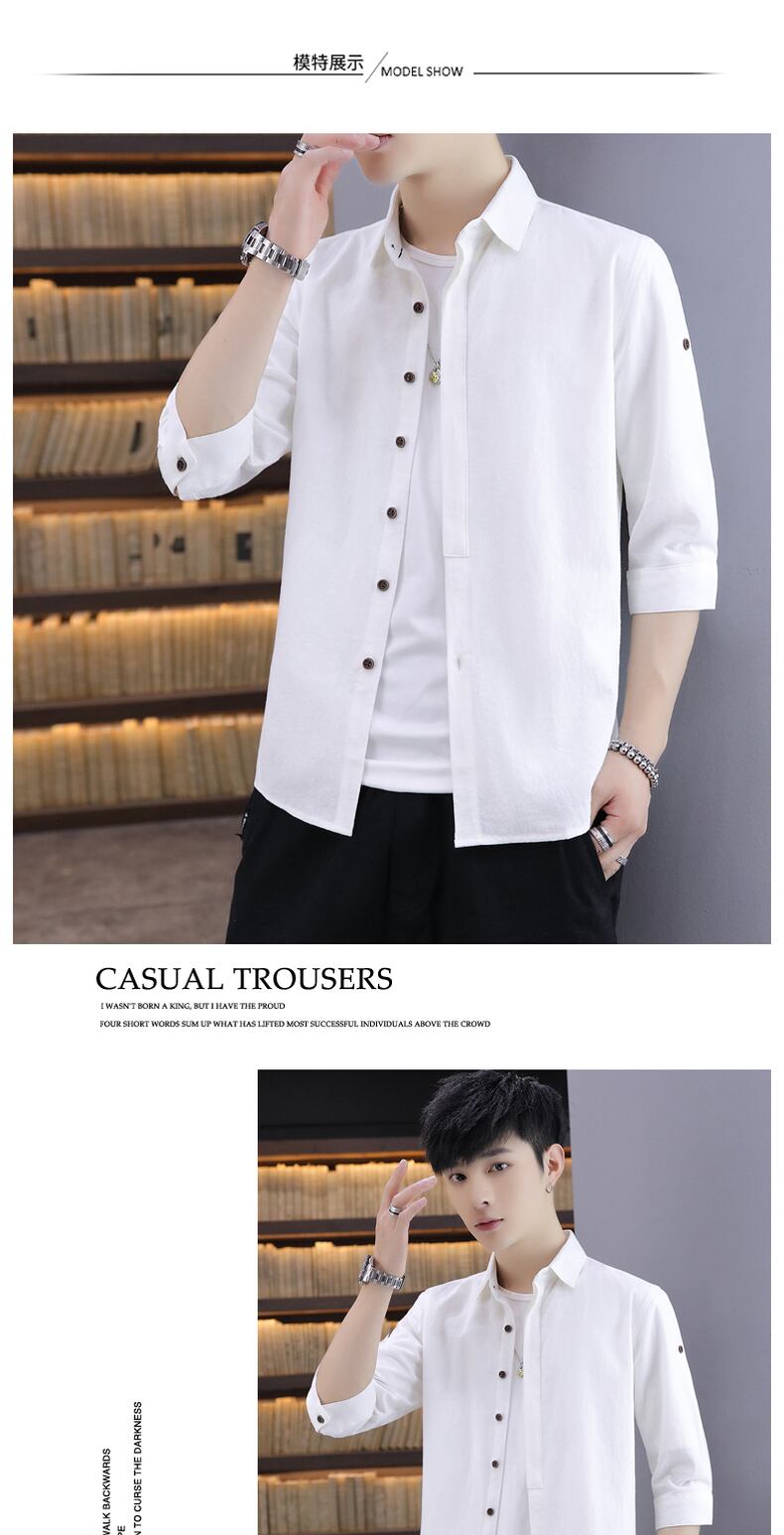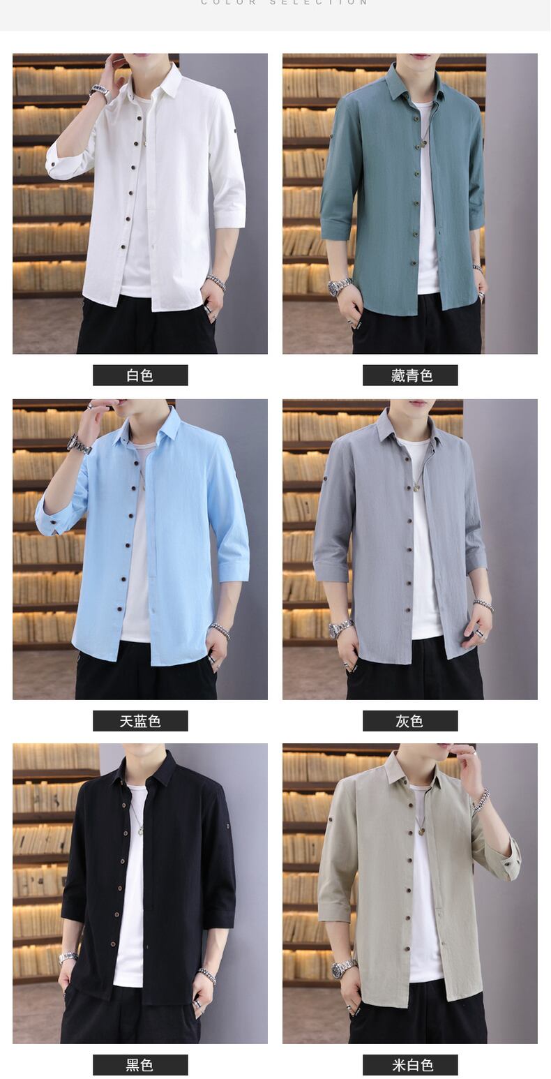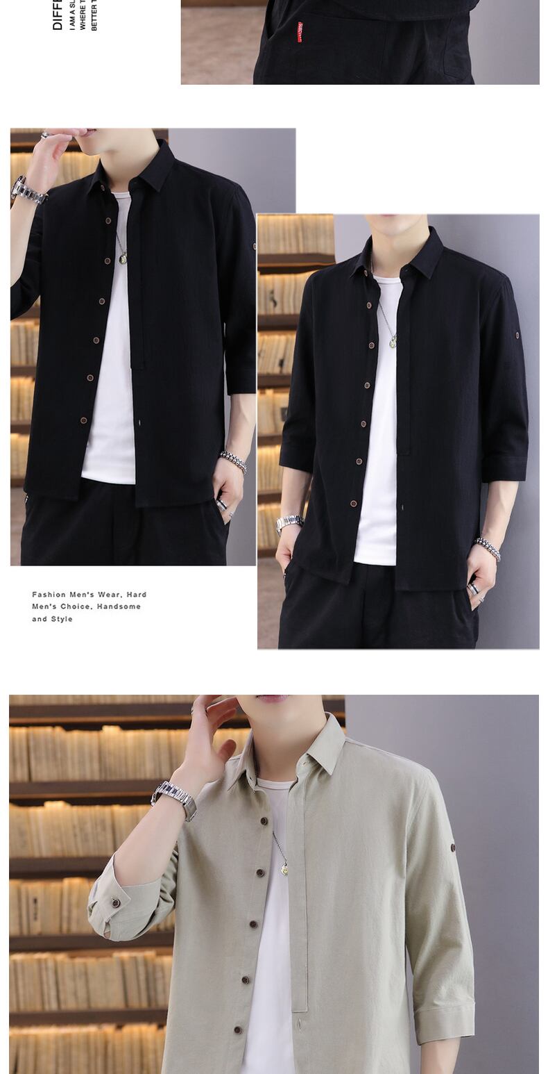 Cotton seven-point sleeve shirt men's summer five-point medium-sleeve tide brand loose 2022 new casual short-sleeved inch shirt コットン カジュアル サマー 夏物 doushi52563485693
