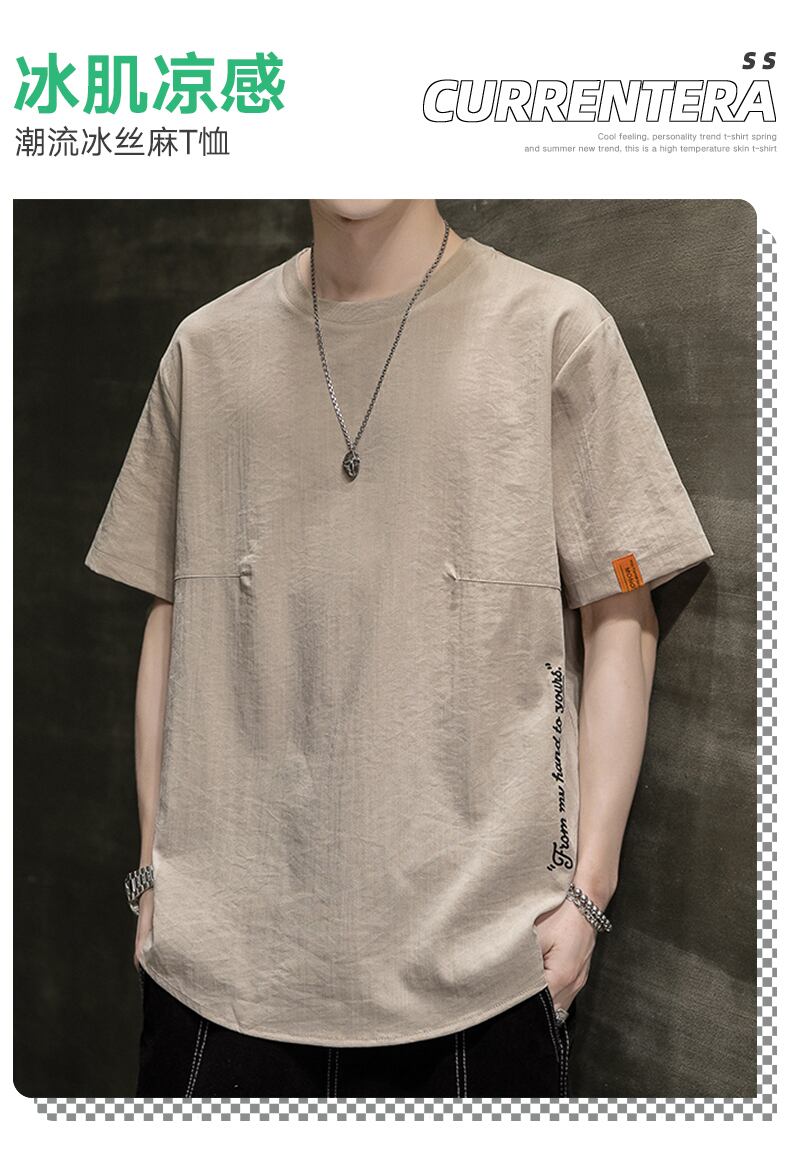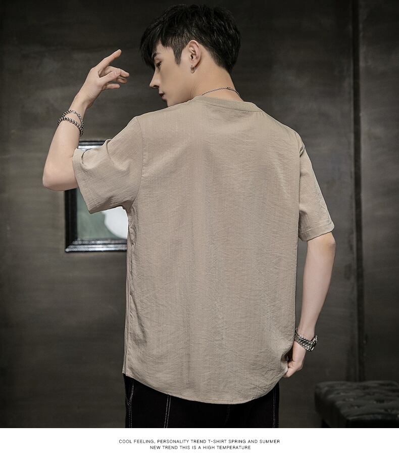 Linen short-sleeved t-shirt men's summer ice silk half-sleeve Chinese style cotton linen Tang suit Hanfu top men's bottoming shirt コットン サマー 夏物 シルク Tシャツ doushi29050760681